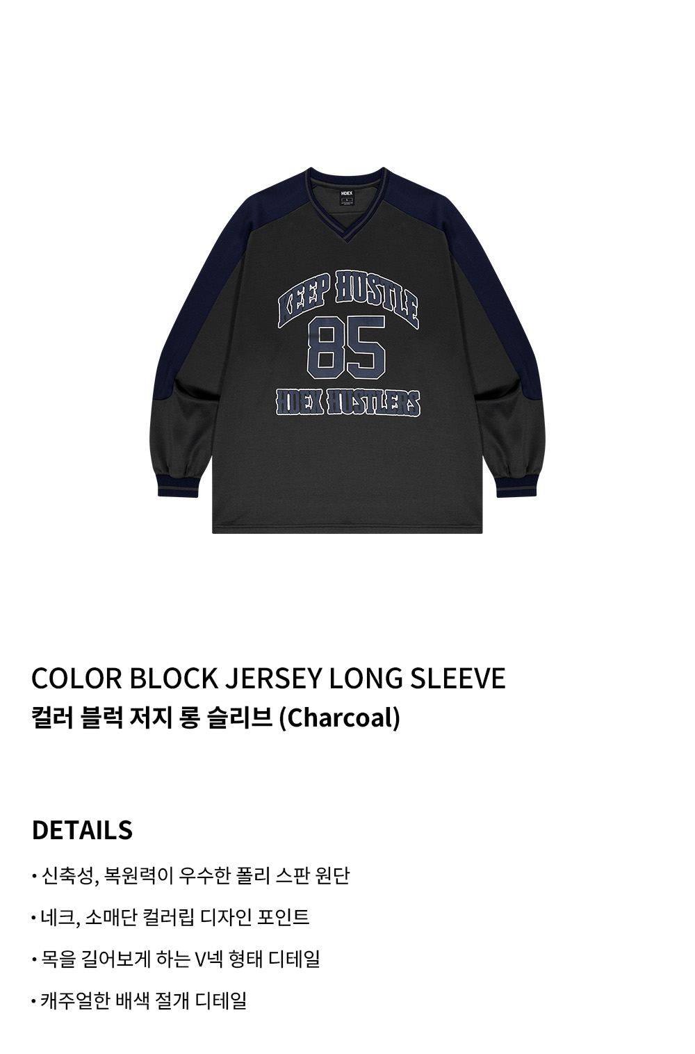 에이치덱스 컬러 블럭 저지 롱 슬리브 차콜