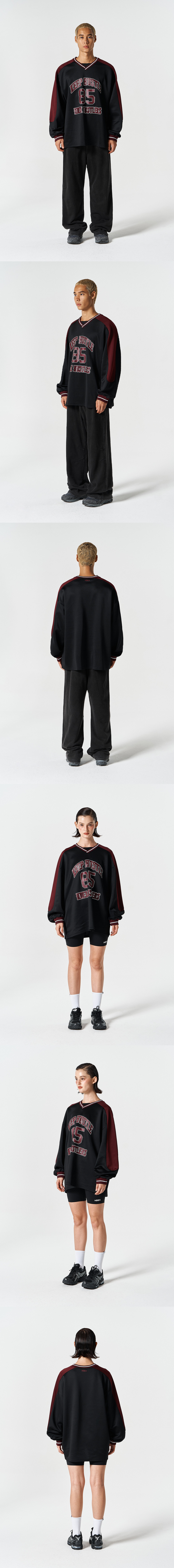 에이치덱스 컬러 블럭 저지 롱 슬리브 블랙
