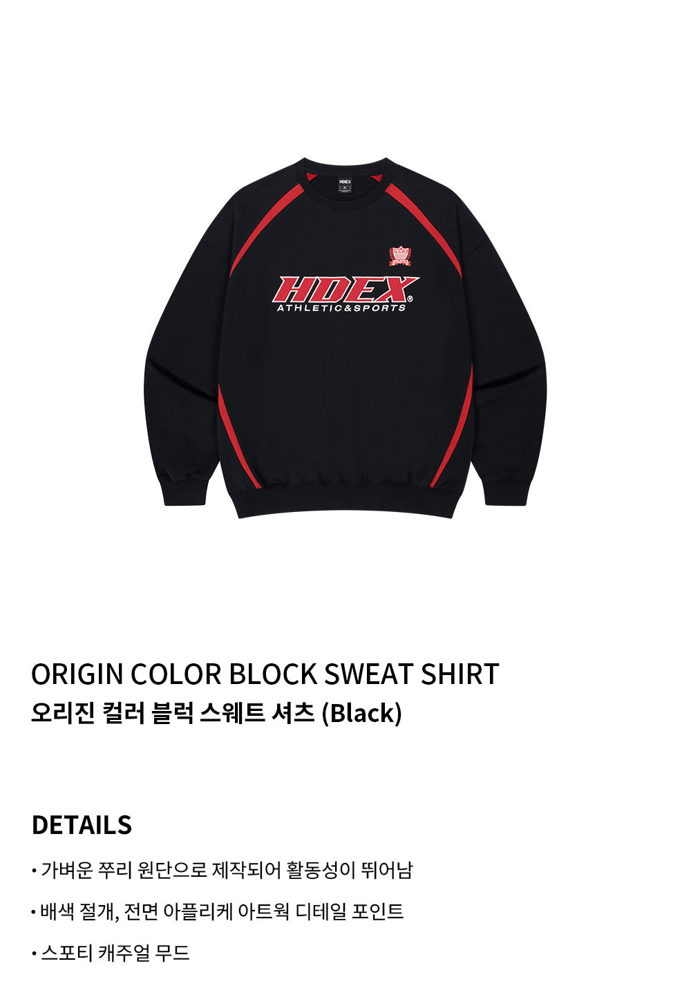 에이치덱스 오리진 컬러 블럭 스웨트 셔츠 블랙