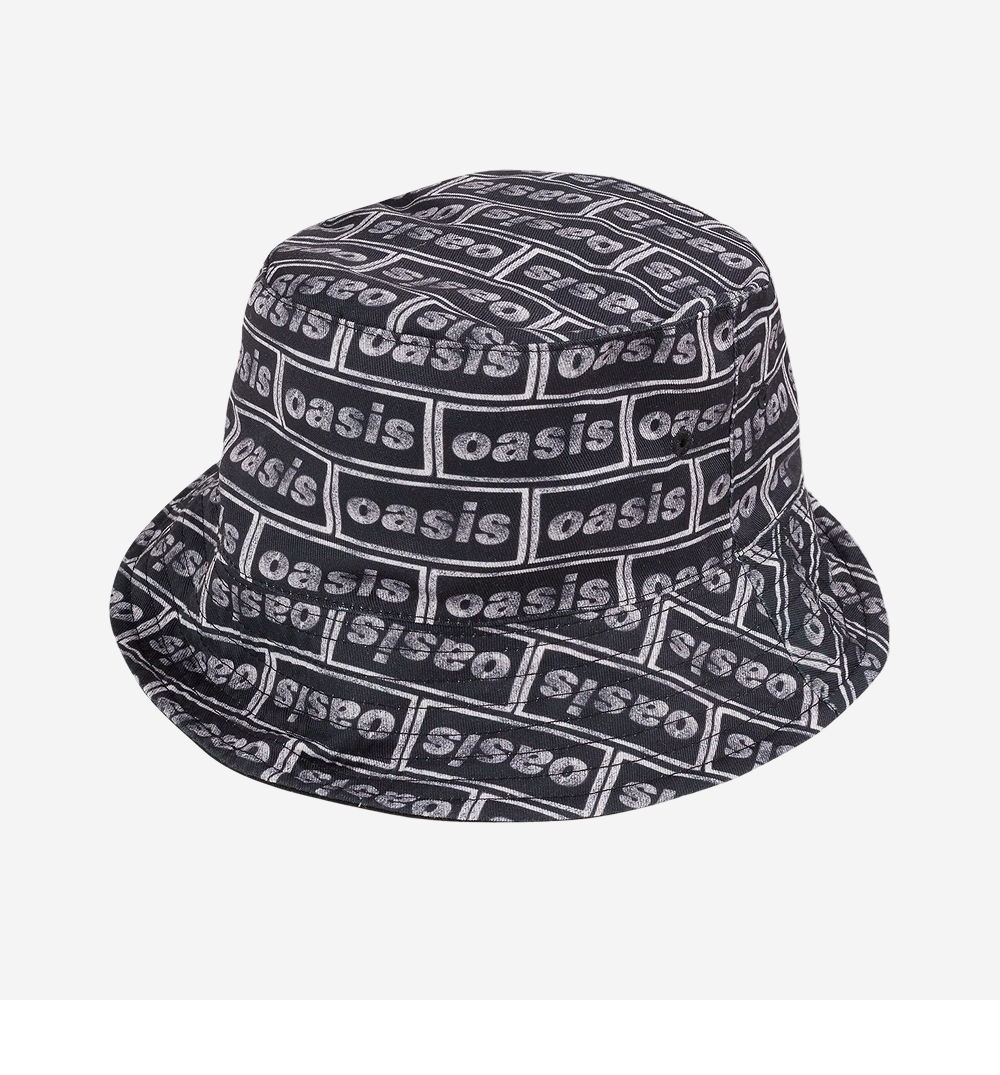 Oasis Decca Logo Reversible Bucket Hat Wased Black White