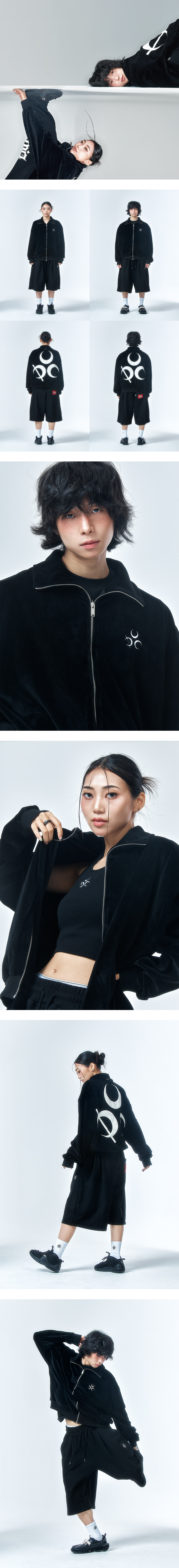 Product Description. ㆍ메쉬 안감 ㆍ여유로운 드랍핏 ㆍ등판 아플리케 심볼 자수 ㆍ앞판 심볼 자수 ㆍ피어싱 악세서리 ㆍ댄스 웨어 ㆍ부드러운 텍스처의 벨루어 원단 ㆍMesh lining ㆍRelaxed drop fit ㆍBack applique symbol embroidery ㆍFront panel symbol embroidery ㆍPiercing accessories ㆍDance wear ㆍVelour fabric with soft texture Product Size & Info. Size : Free Color : Black, Midnight Blue, Cream, Red Orange, Pink Fabric used : Main: Cotton 80%, Polyester 20% / Linning: Polyester 100% Free Size : Chest 73 / Shoulder 72.5 / Sleeve length 66 / Length 70 MADE IN KOREA.