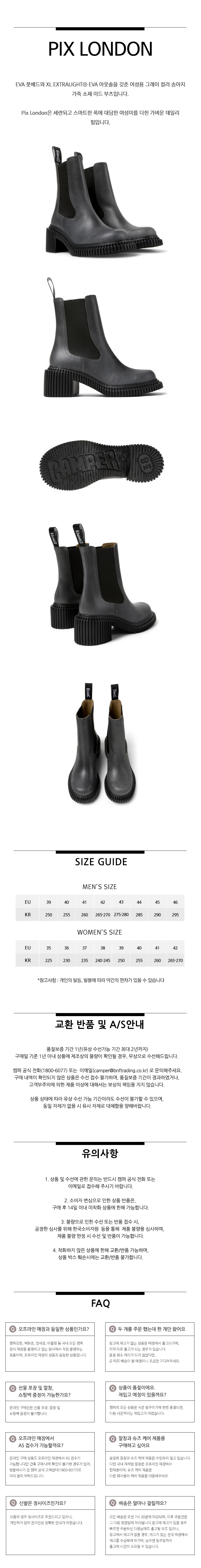 캠퍼 여성 픽스 런던 부츠 그레이