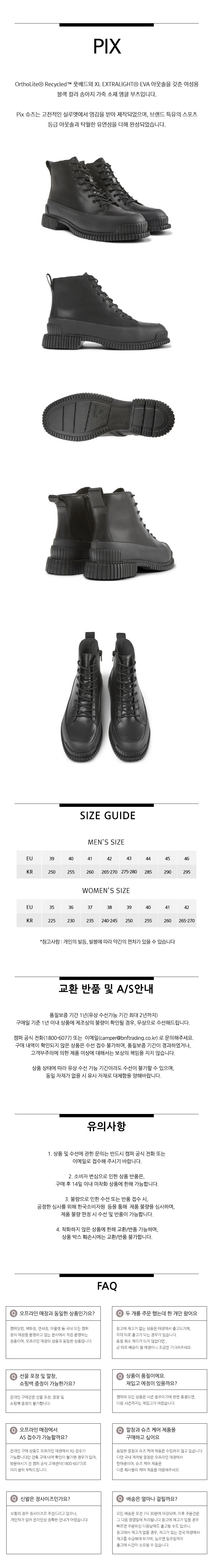 캠퍼 여성 픽스 부츠 블랙