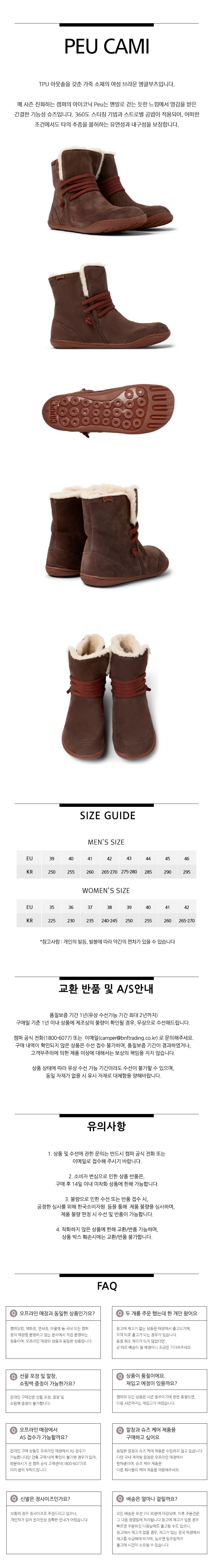 캠퍼 여성 페우 까미 부츠 브라운