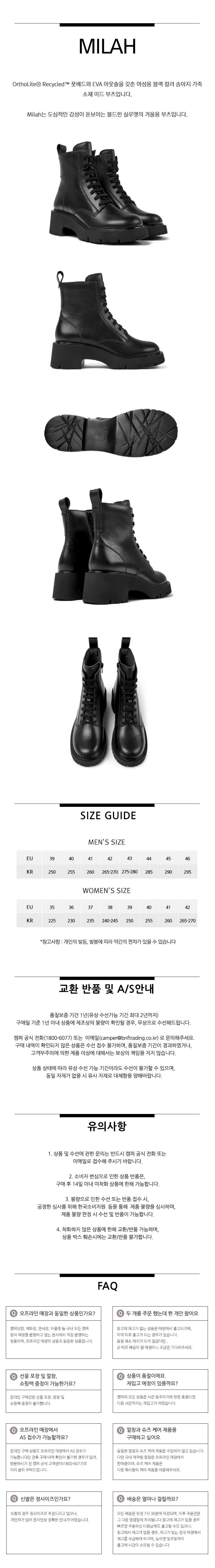 캠퍼 여성 밀라 부츠 블랙