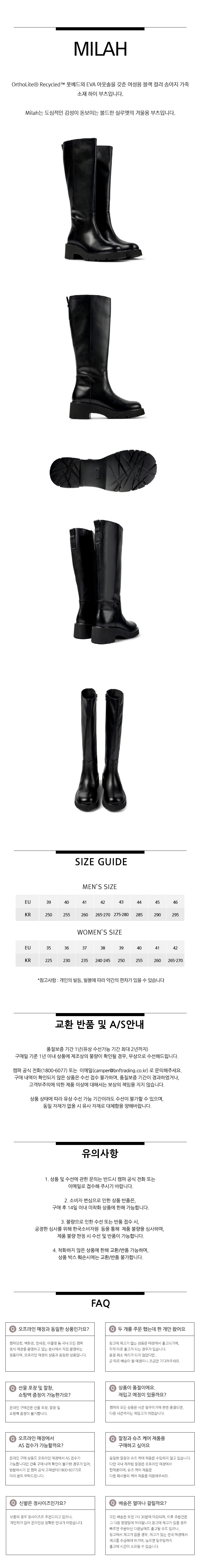 캠퍼 여성 밀라 부츠 블랙