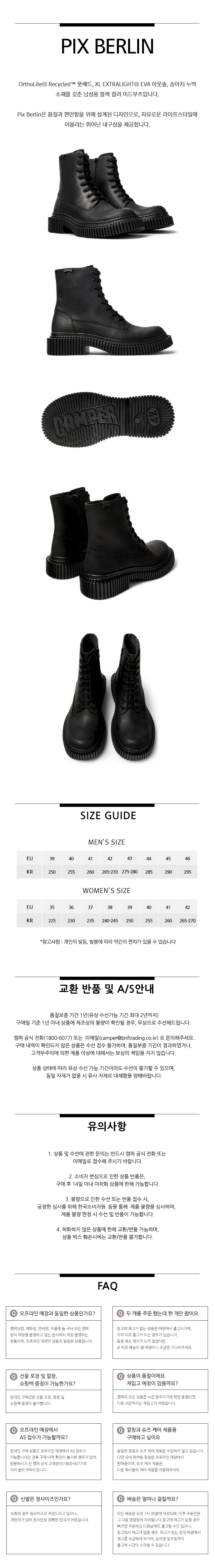 캠퍼 남성 픽스 베를린 부츠 블랙