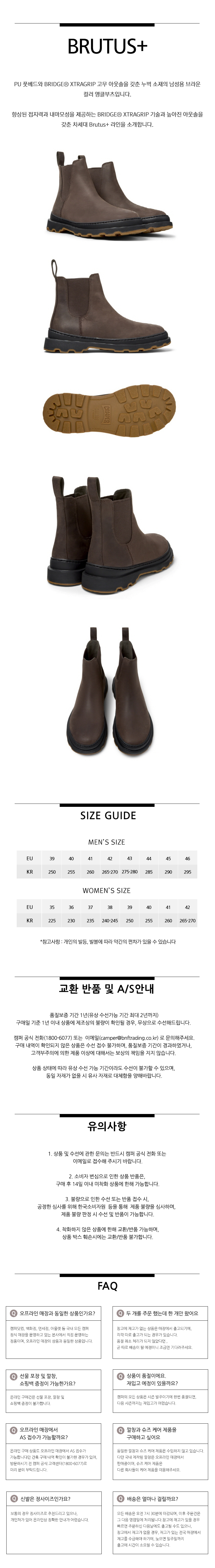 캠퍼 남성 브루투스+ 부츠 브라운