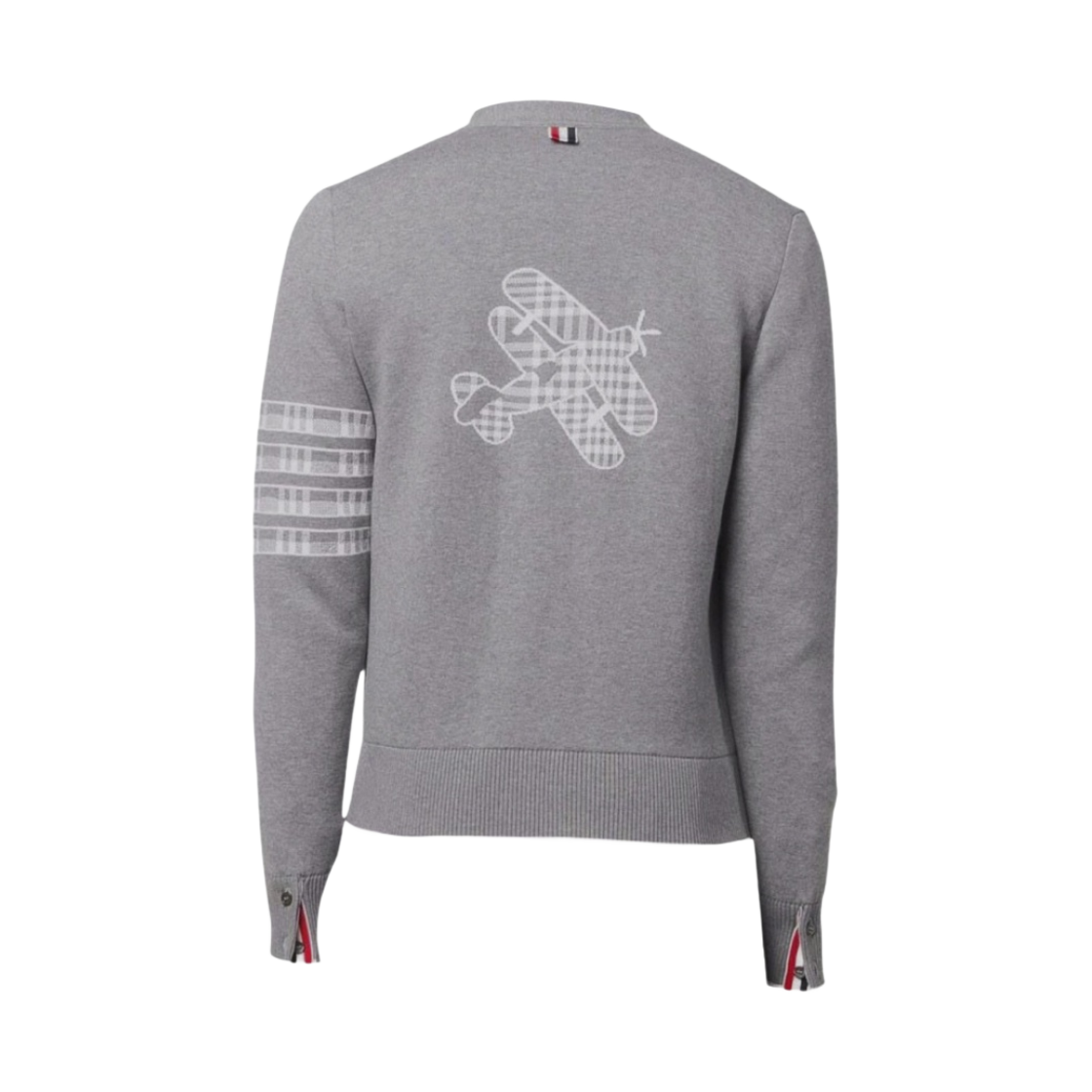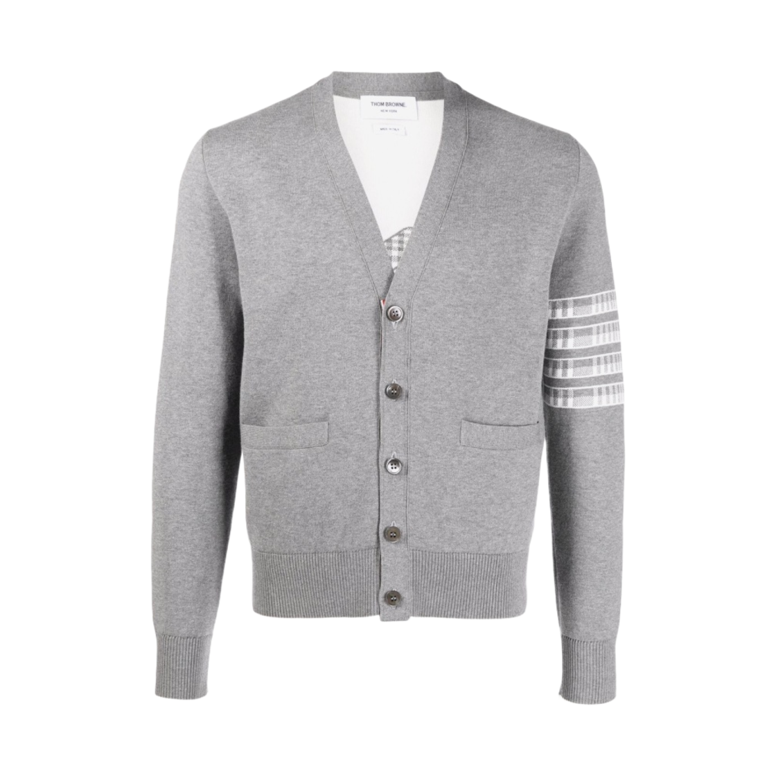 Thom Browne Cotton Plane Jacquard Back 4-Bar V-Neck Cardigan Light Grey