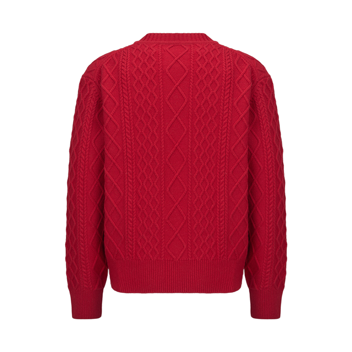 메리노 울 블렌드 스웨터입니다. 불규칙한 케이블 조직감과 시즌성이 돋보이는 컬러감이 특징이며, 노이스 심볼 로고로 포인트를 더했습니다.