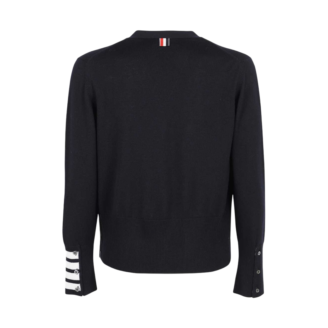 Thom Browne Fine Merino Wool 4-Bar Cuff V-Neck Cardigan Navy