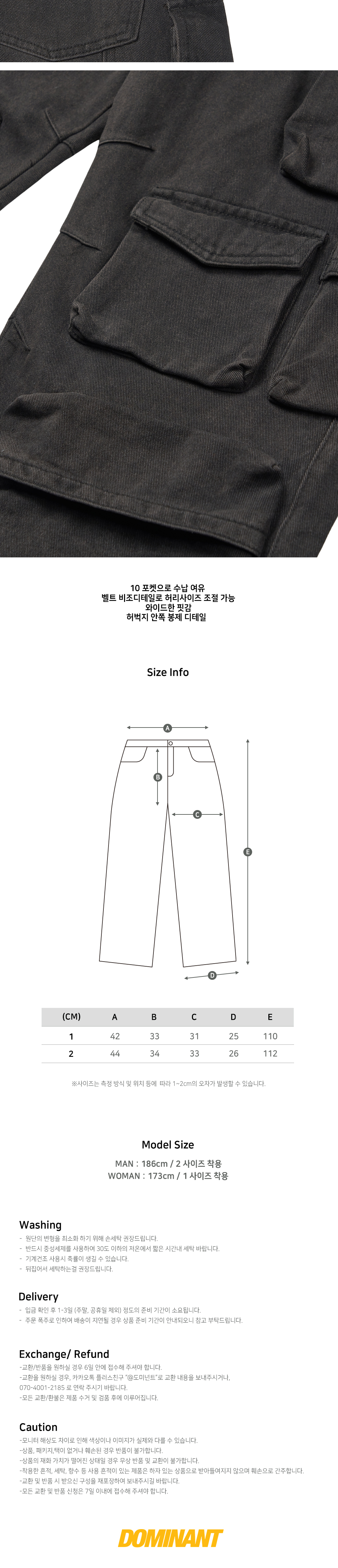 도미넌트 데님 텐 포켓 카고 팬츠 블랙