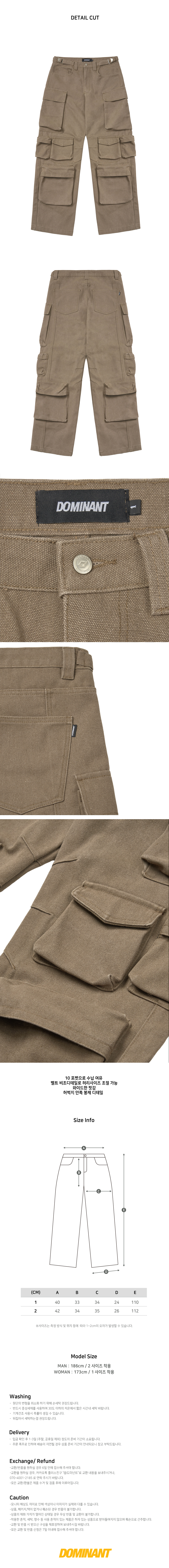 도미넌트 텐 포켓 카고 팬츠 브라운