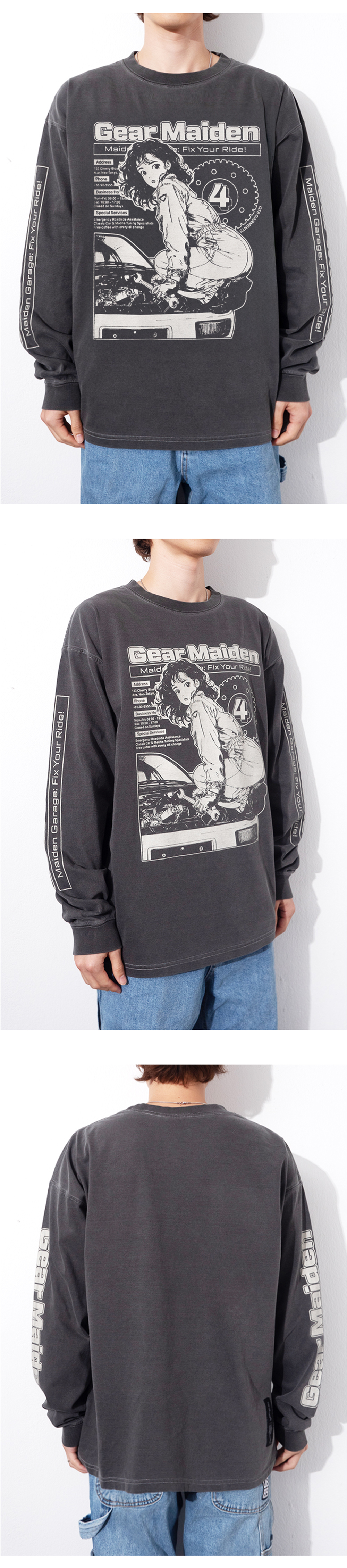 큐티에잇 가먼츠 기어 메이든 워시드 롱 슬리브 차콜