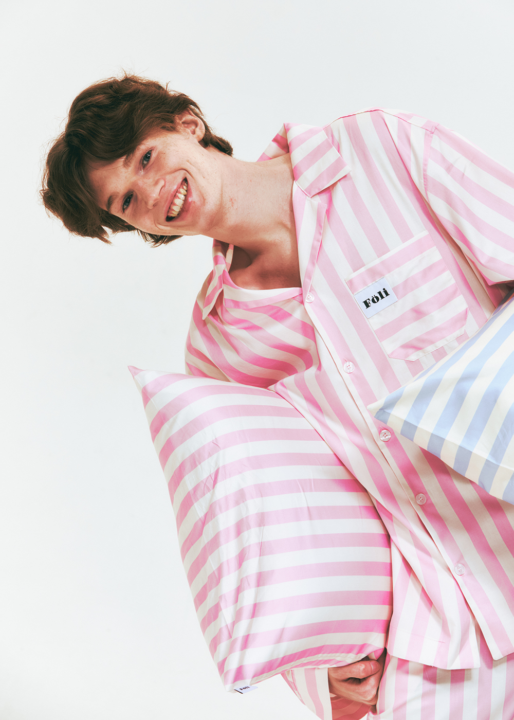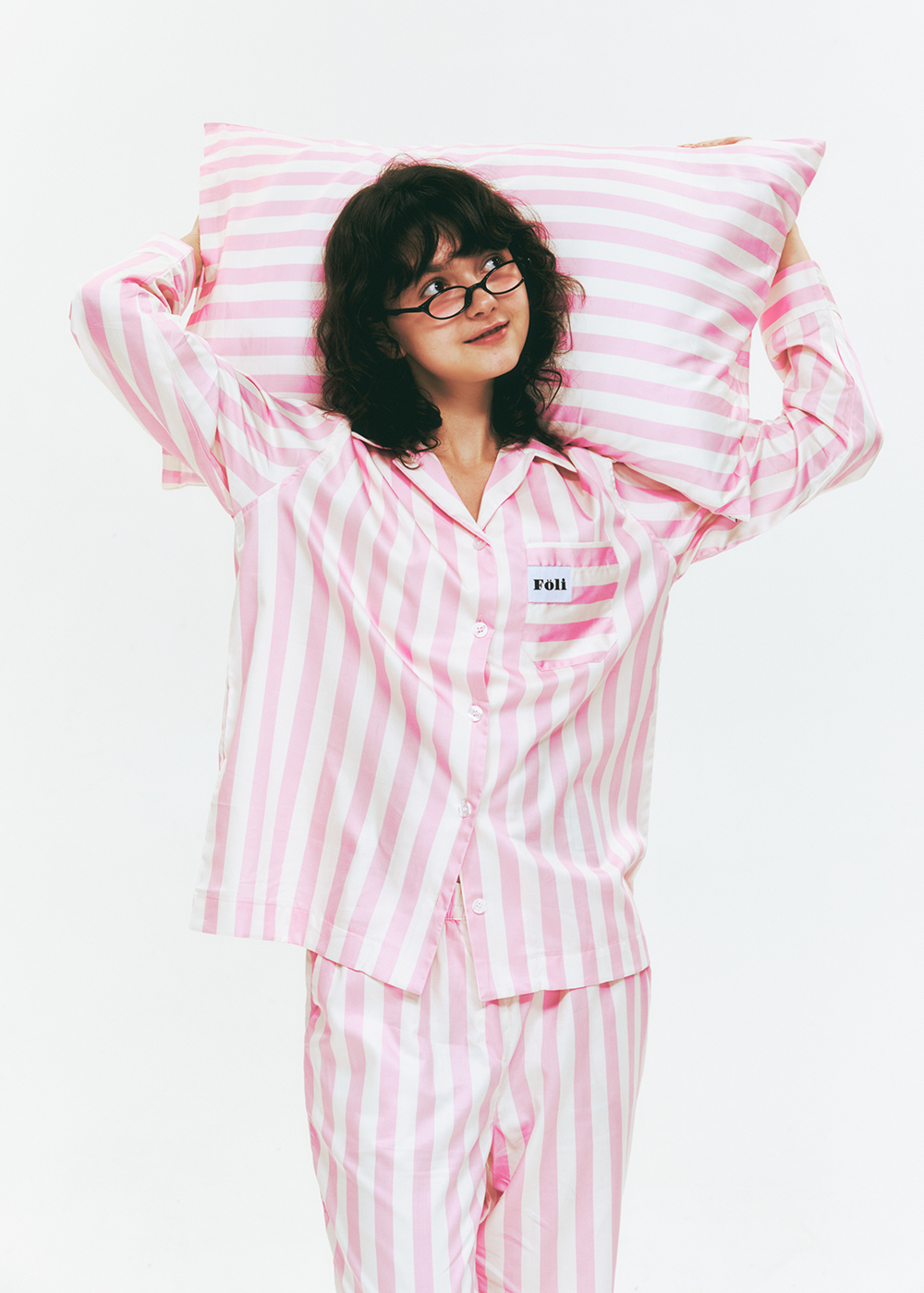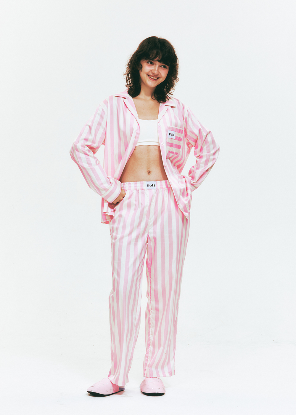 폴리 유니섹스 페일 핑크 긴팔/긴바지 파자마 세트