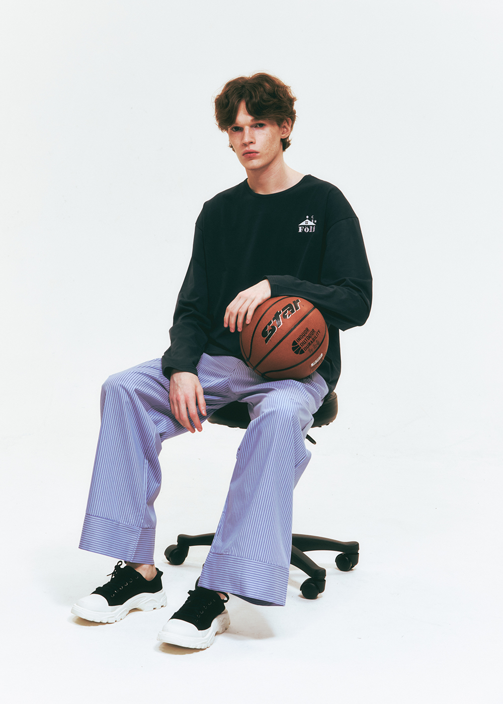 폴리 유니섹스 스트라이프 원마일 롱팬츠 블루