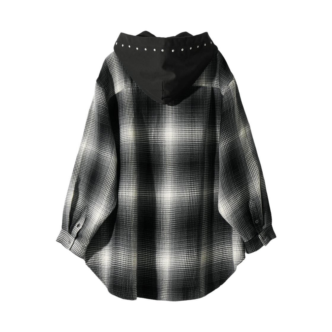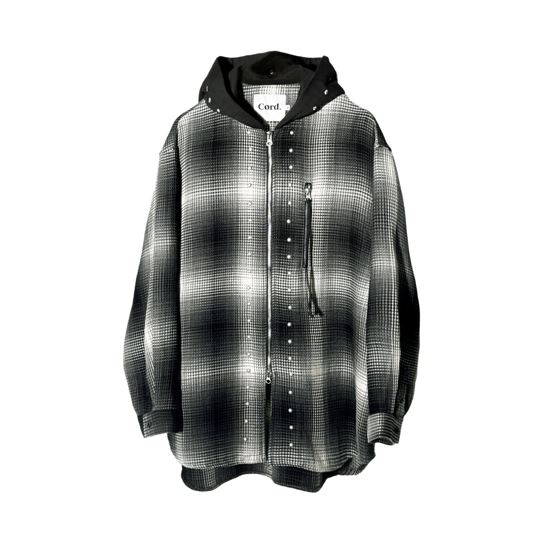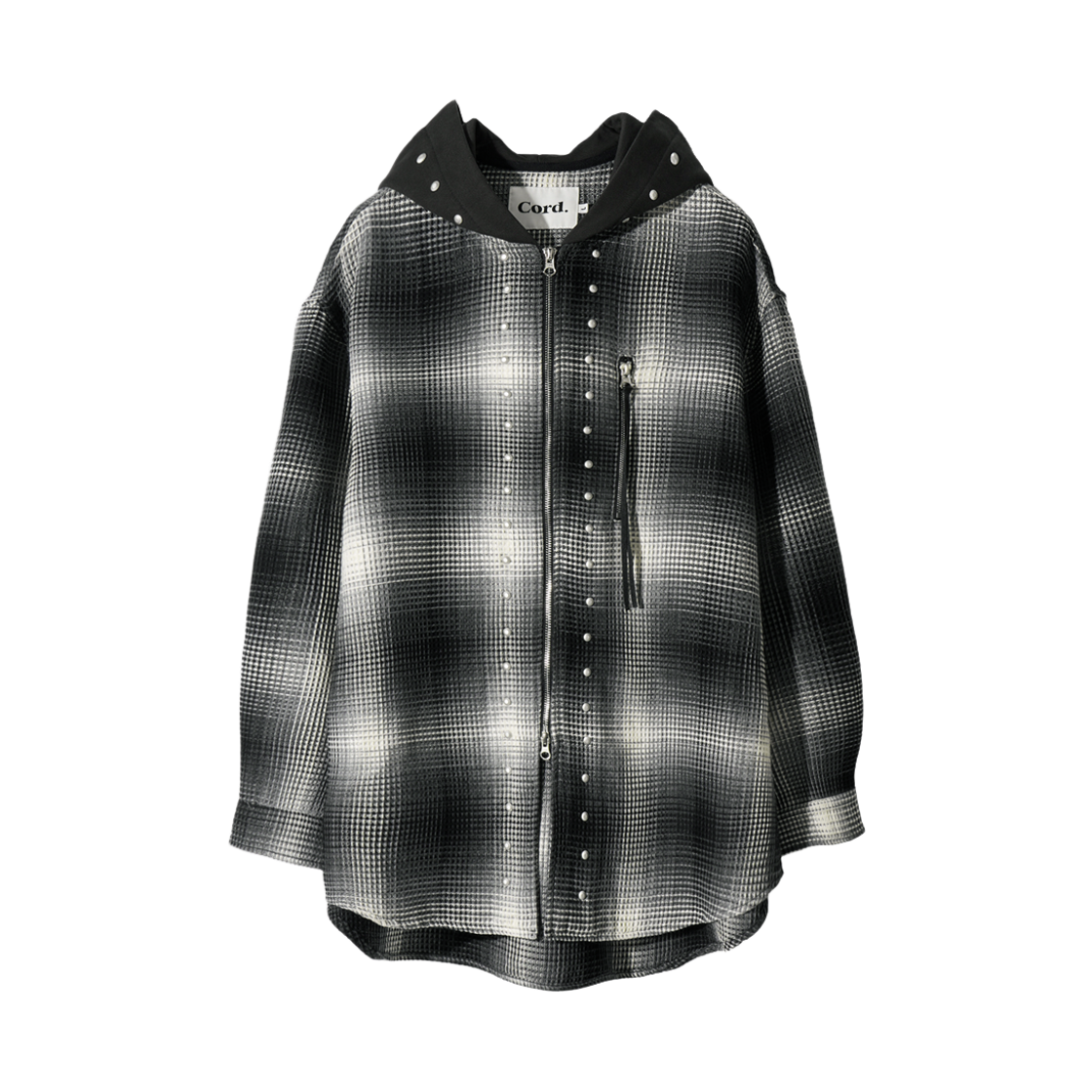 코드 지퍼포켓 후디드 스터드 셔츠 블랙