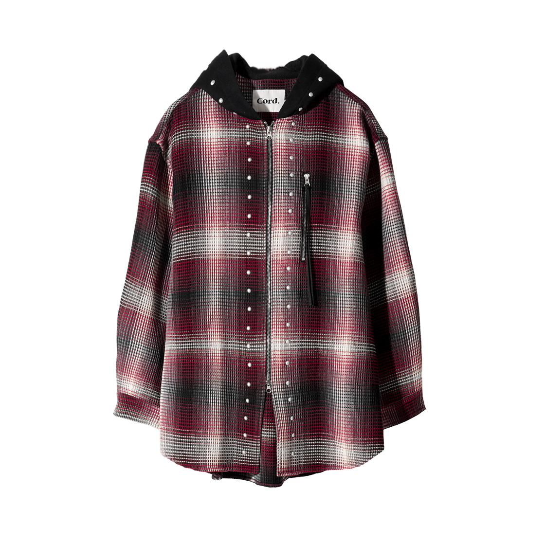 코드 지퍼포켓 후디드 스터드 셔츠 레드