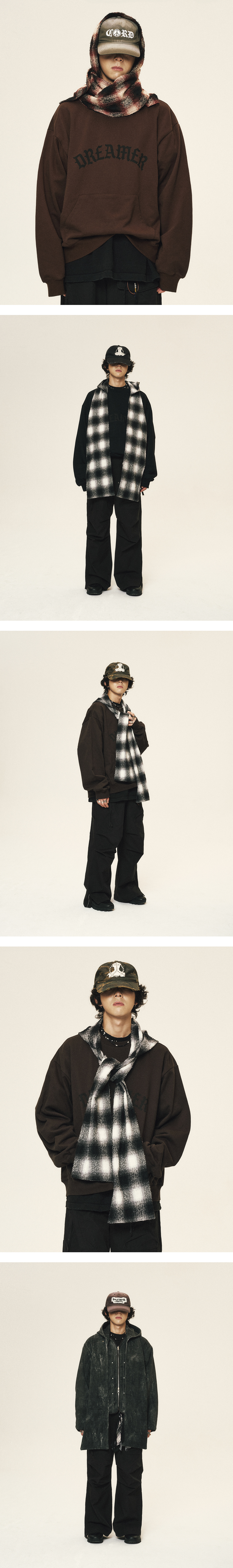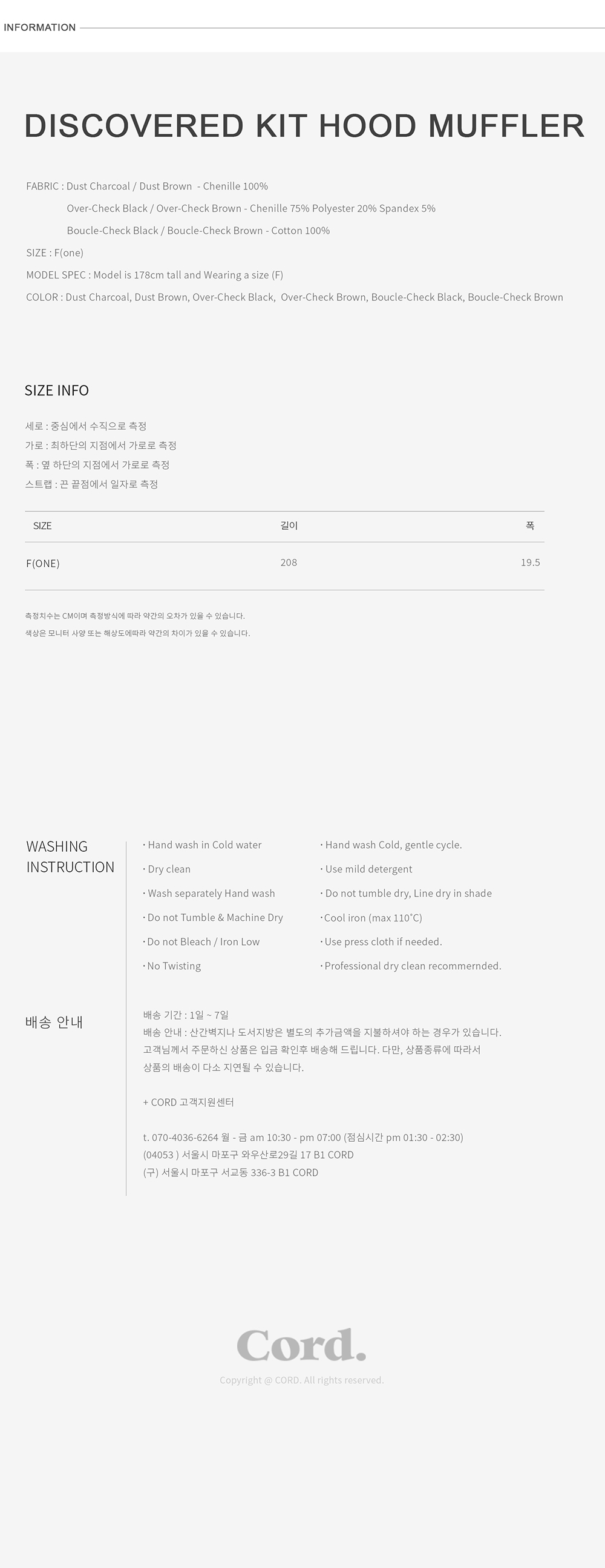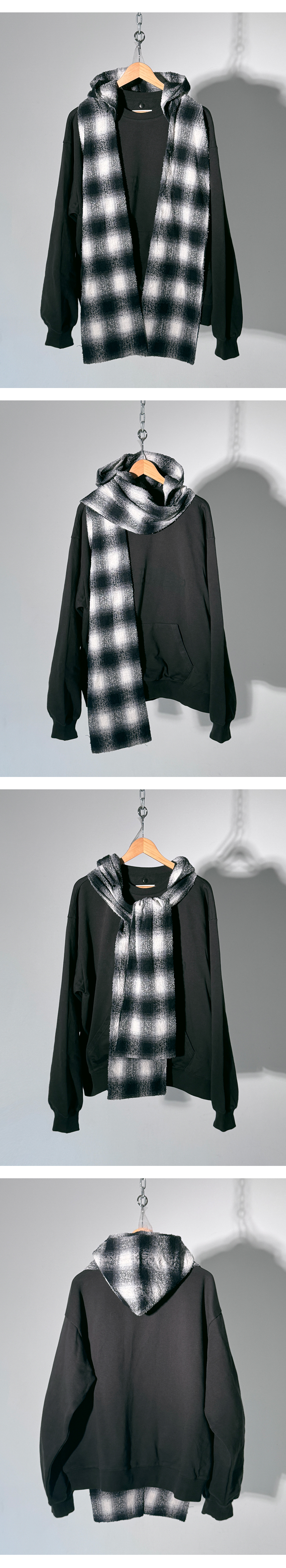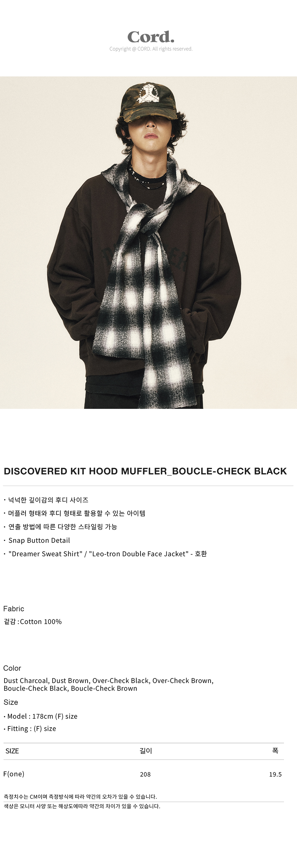 코드 디스커버드 키트 후드 머플러 부클 체크 블랙