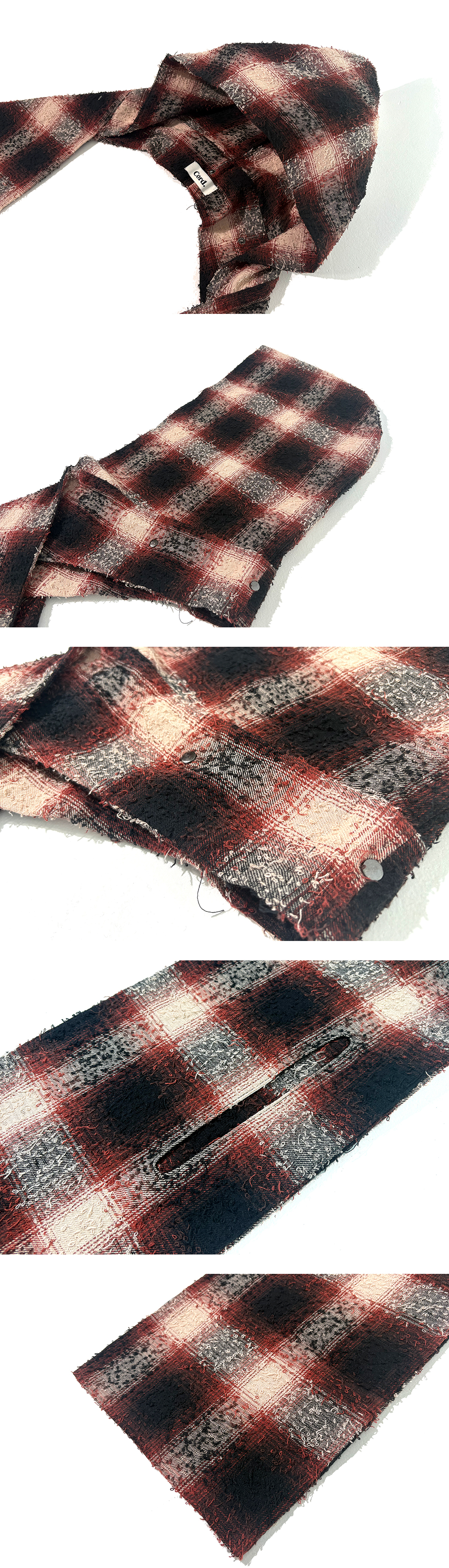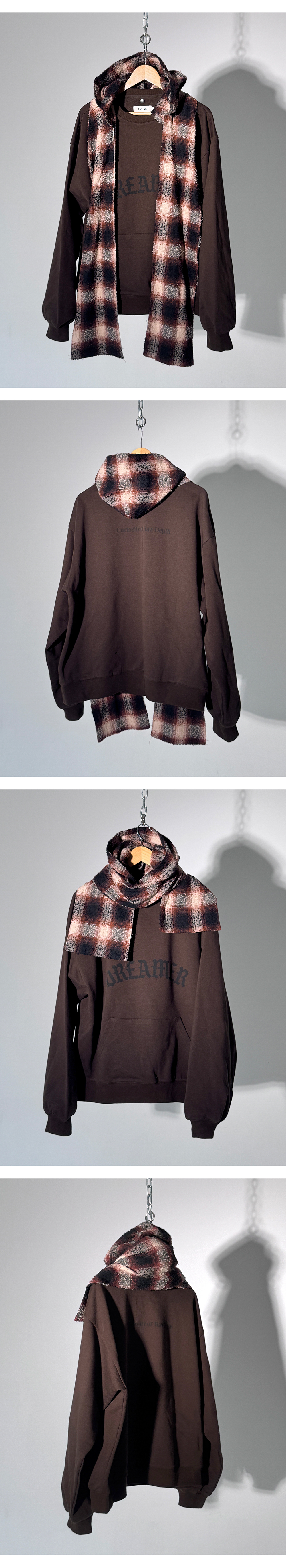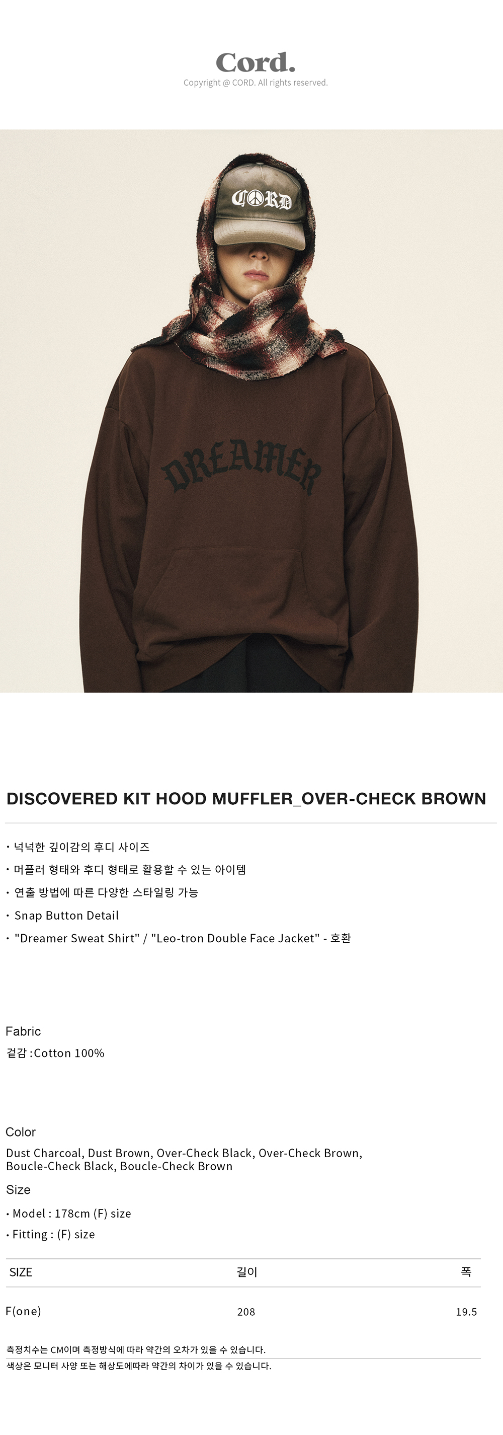 코드 디스커버드 키트 후드 머플러 부클 체크 브라운