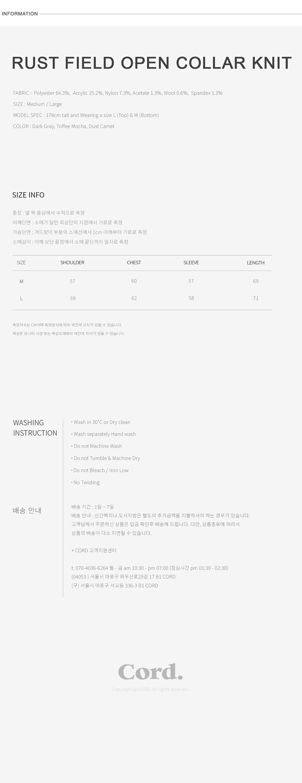 코드 러스트 필드 오픈 카라 니트 토피 모카