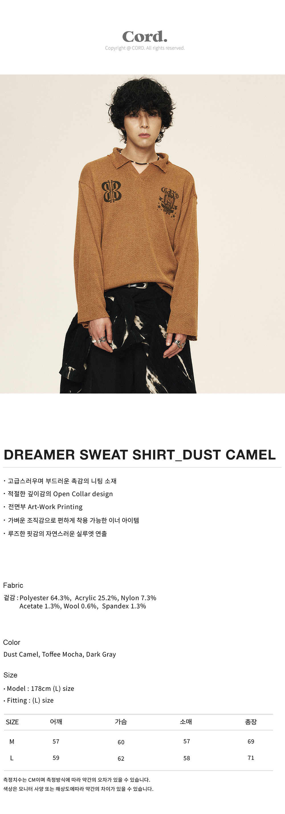 코드 러스트 필드 오픈 카라 니트 더스트 카멜
