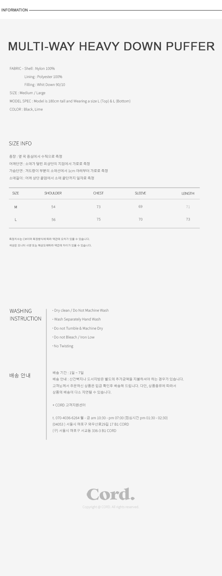 코드 멀티-웨이 헤비 다운 푸퍼 라임