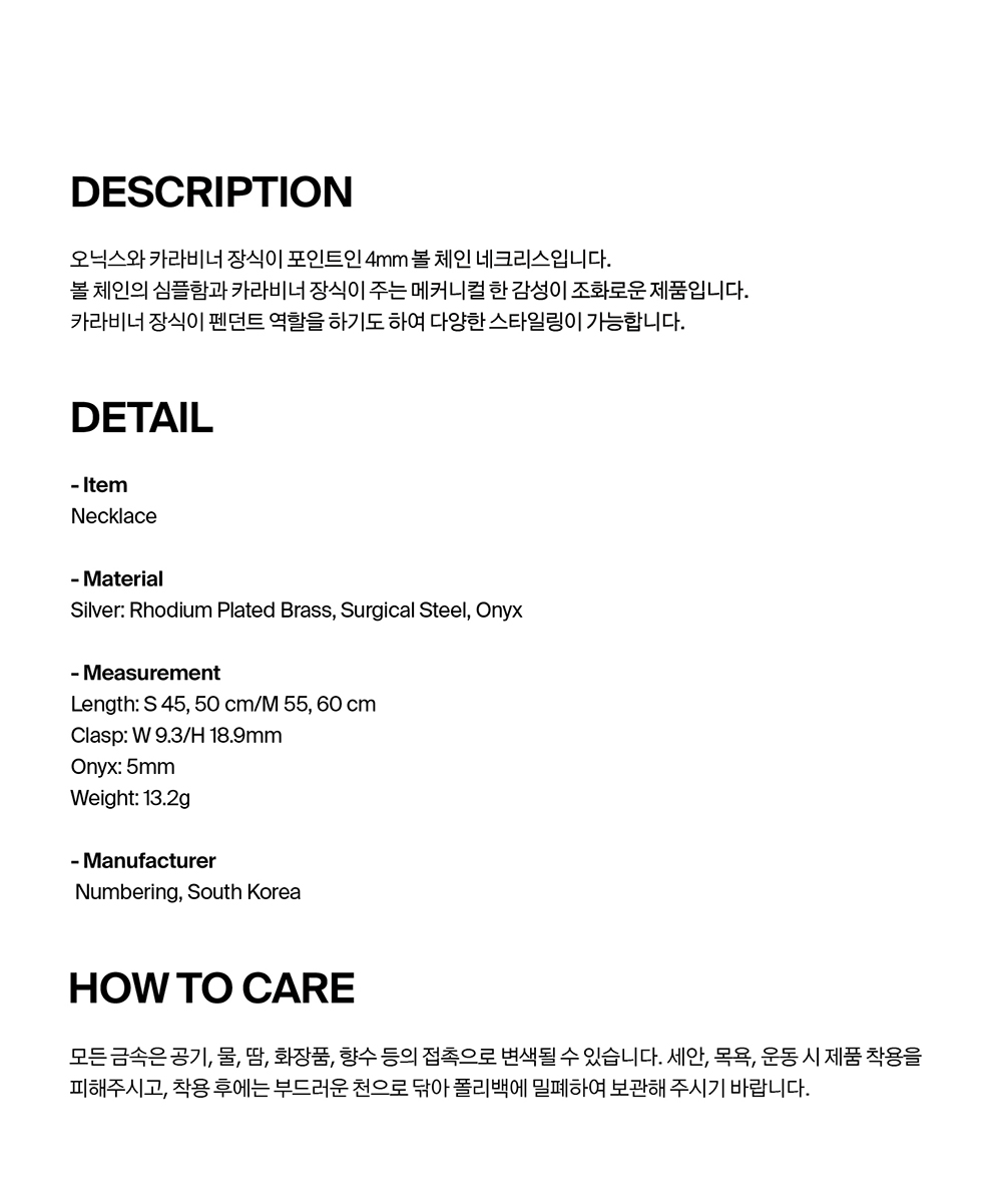 넘버링 #5775 볼 체인 네크리스 위드 카라비너 클래스프 실버