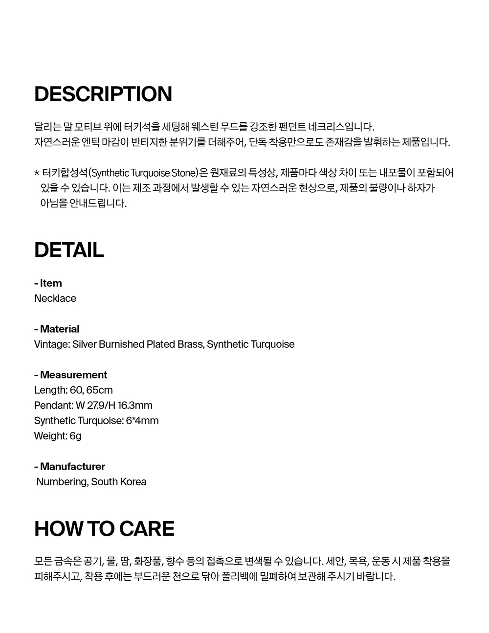 넘버링 #6763 홀스 터콰이즈 펜던트 네크리스