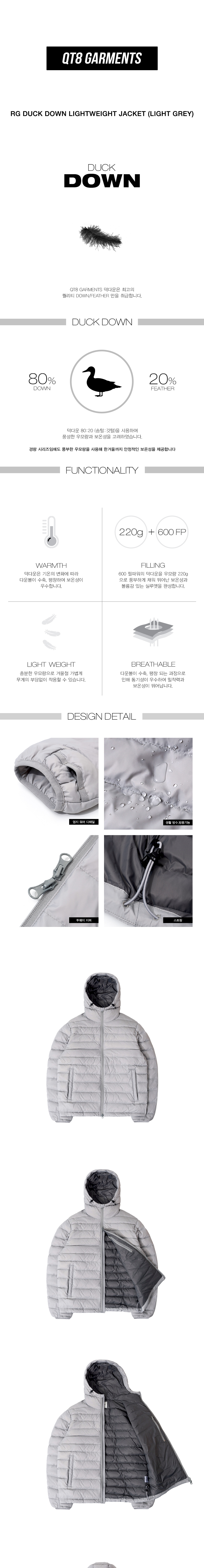큐티에잇 가먼츠 덕 다운 라이트웨이트 자켓 라이트 그레이