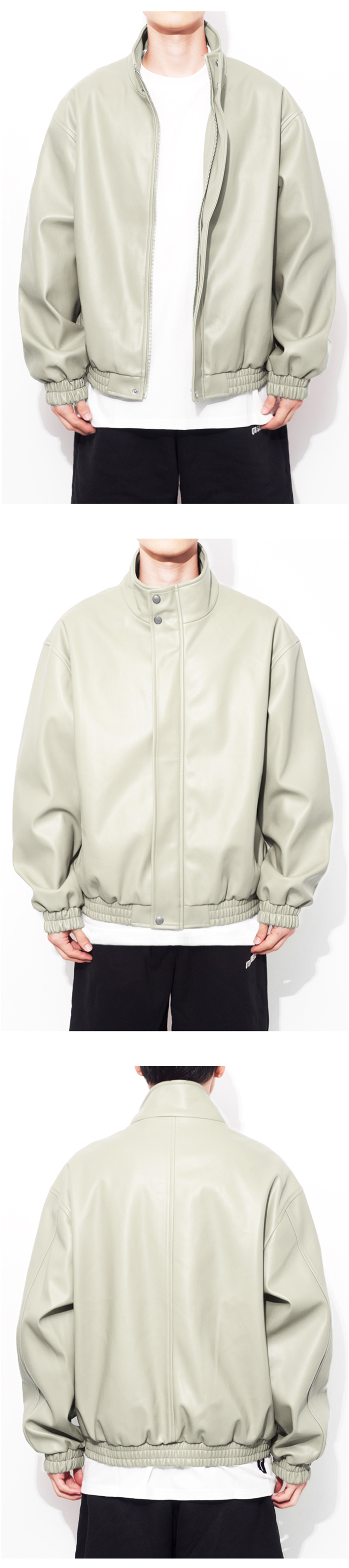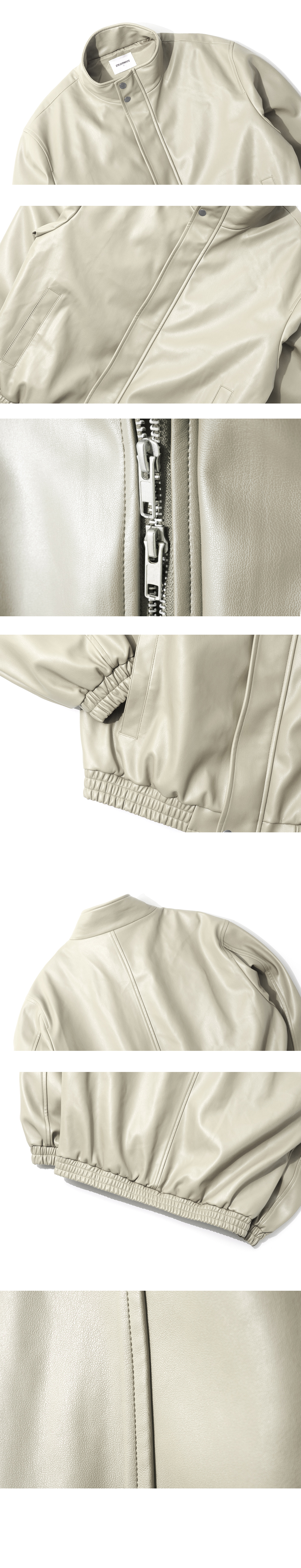 큐티에잇 가먼츠 신세틱 레더 히든 자켓 크림