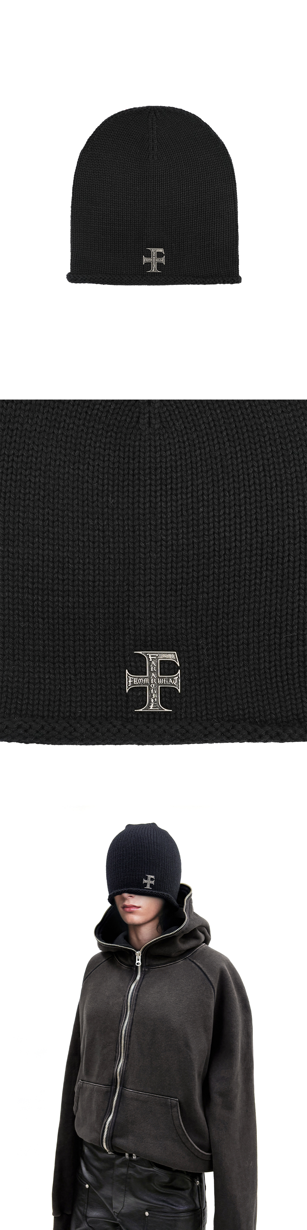 [더블적립]Farfromwhat Far Small F Charm Beanie_Black