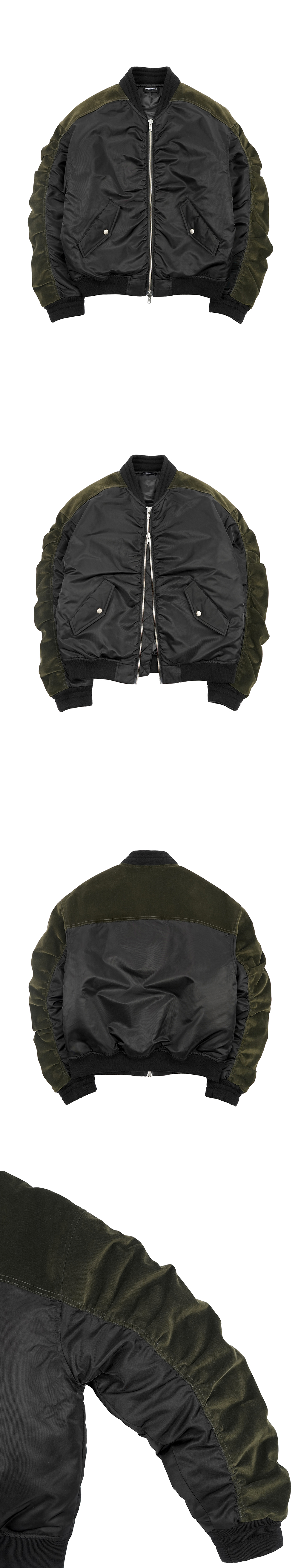 • Textural Contrast (Matte Nylon & Brushed Fabric) • YKK 2-Way Zipper • Dropped Shoulders • Relaxed Voluminous Sleeves • Snap Hand Pockets • Ribbed Finishing • Made in South Korea MODEL INFO Height: 188cm (6'2") / Wearing Size 2