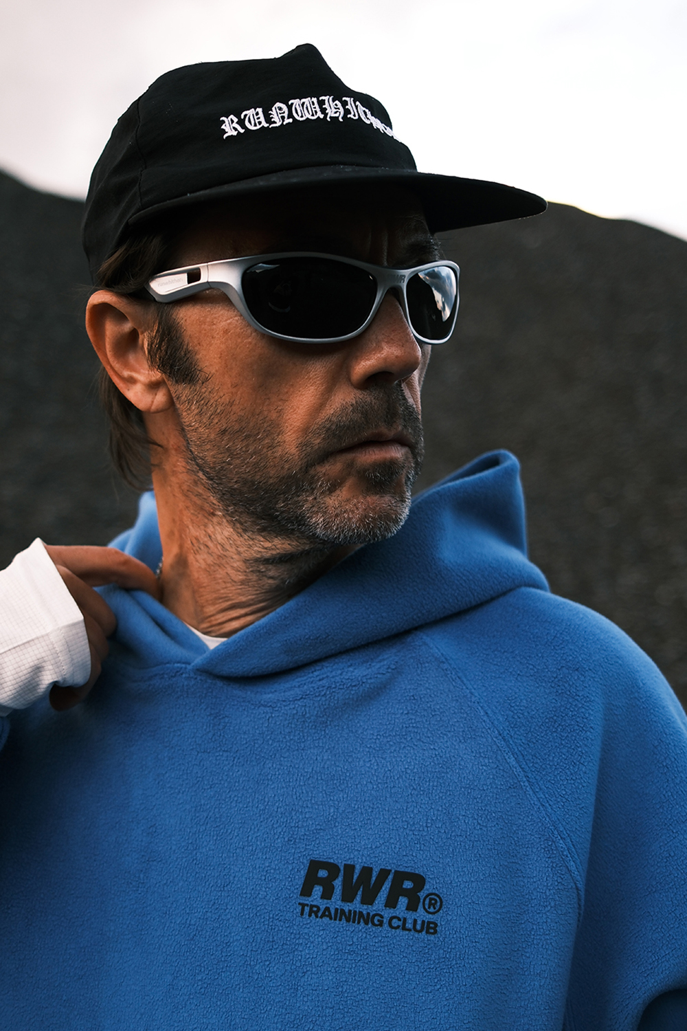 런위더 러닝 클럽 후리스 후드 블루