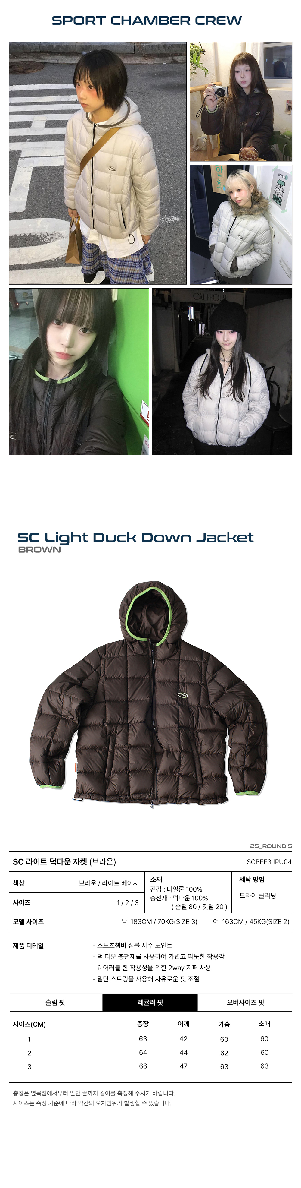 스포츠챔버 라이트 덕다운 자켓 브라운