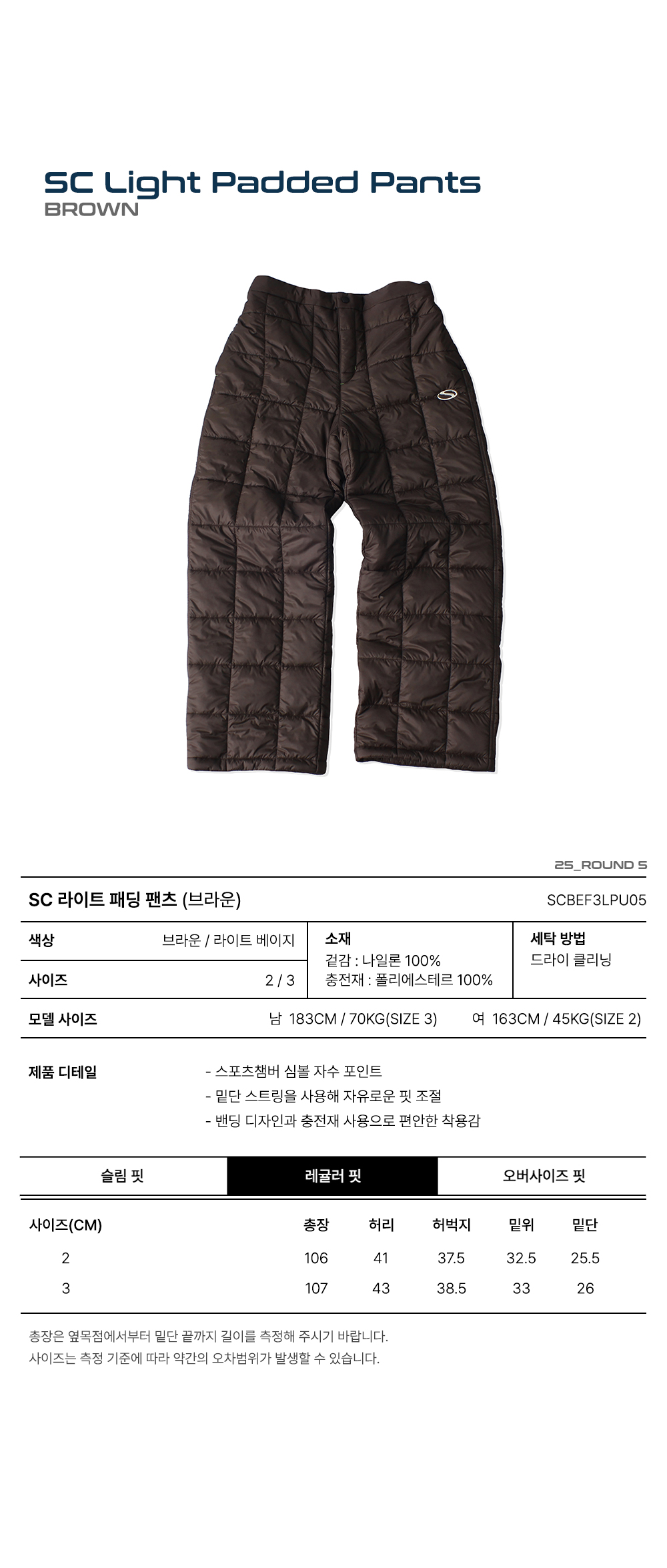 스포츠챔버 라이트 패딩 팬츠 브라운