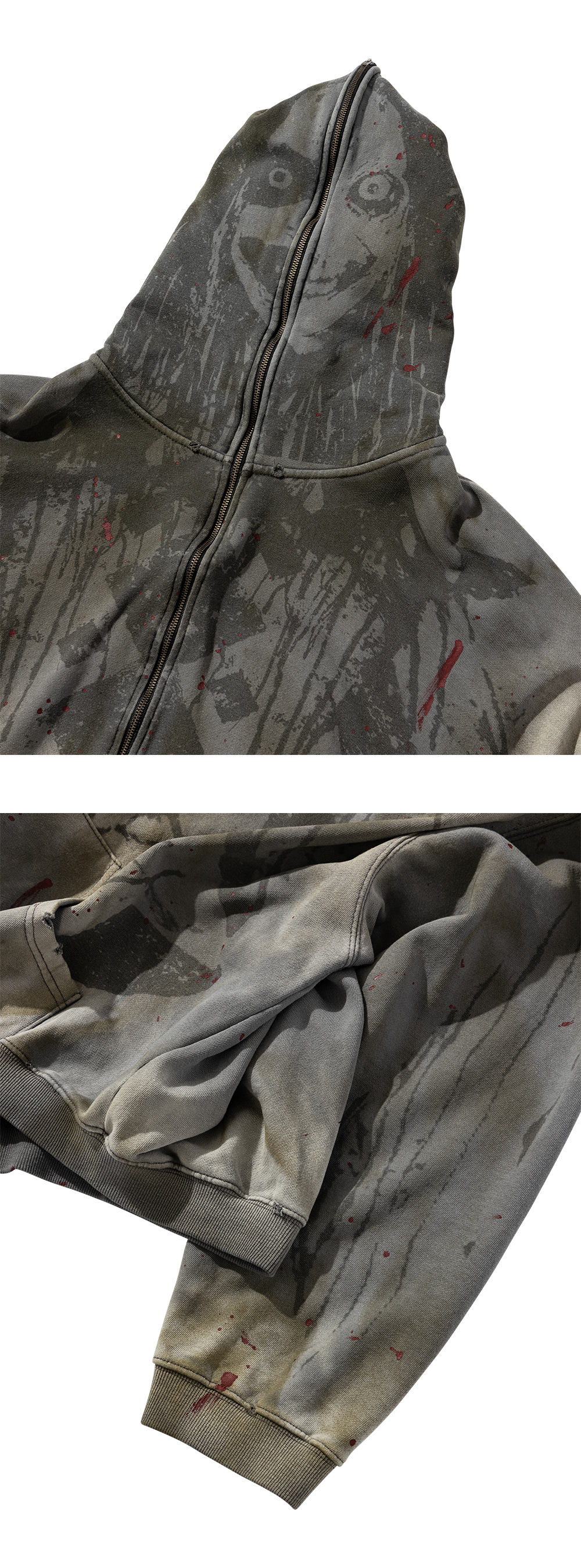 언더마이카 25FW 다크 서큐버스 페이스 풀 집업 후디 차콜