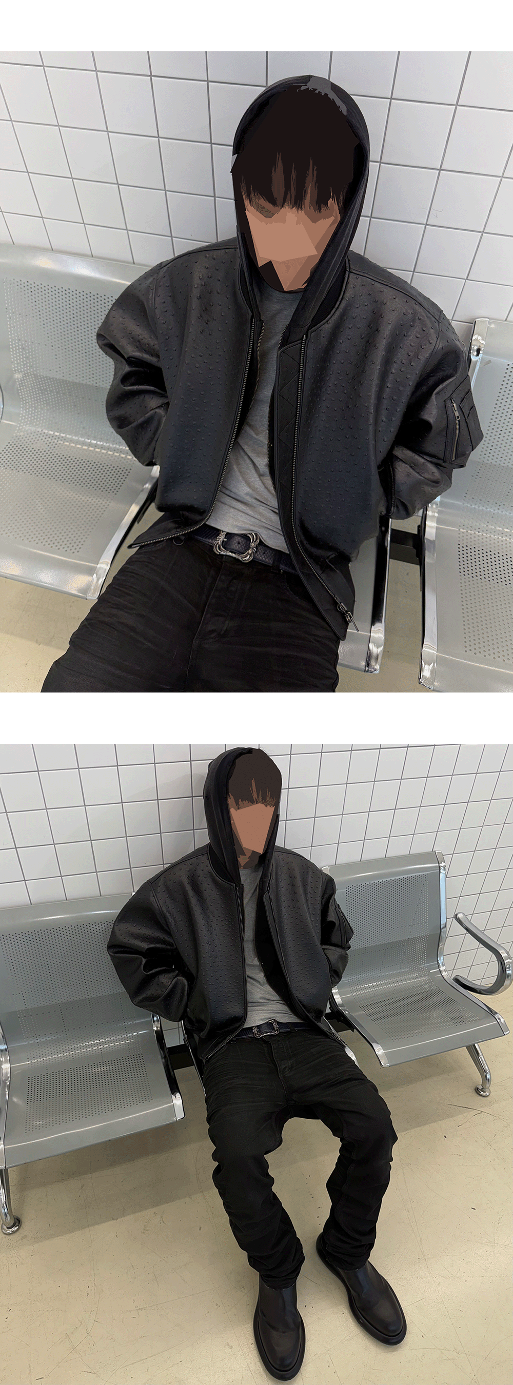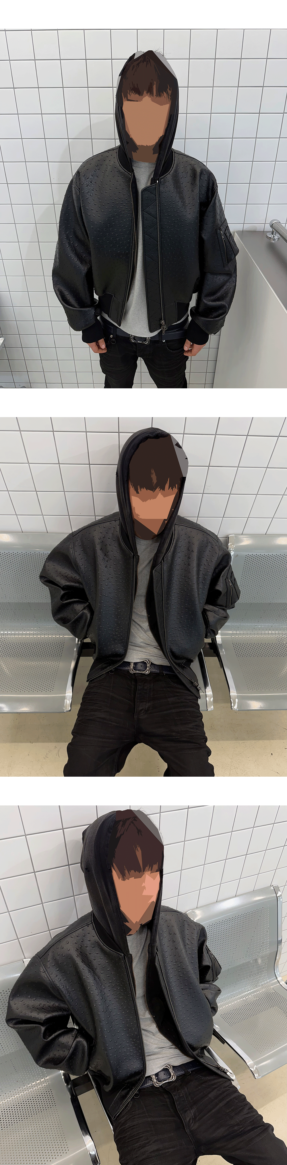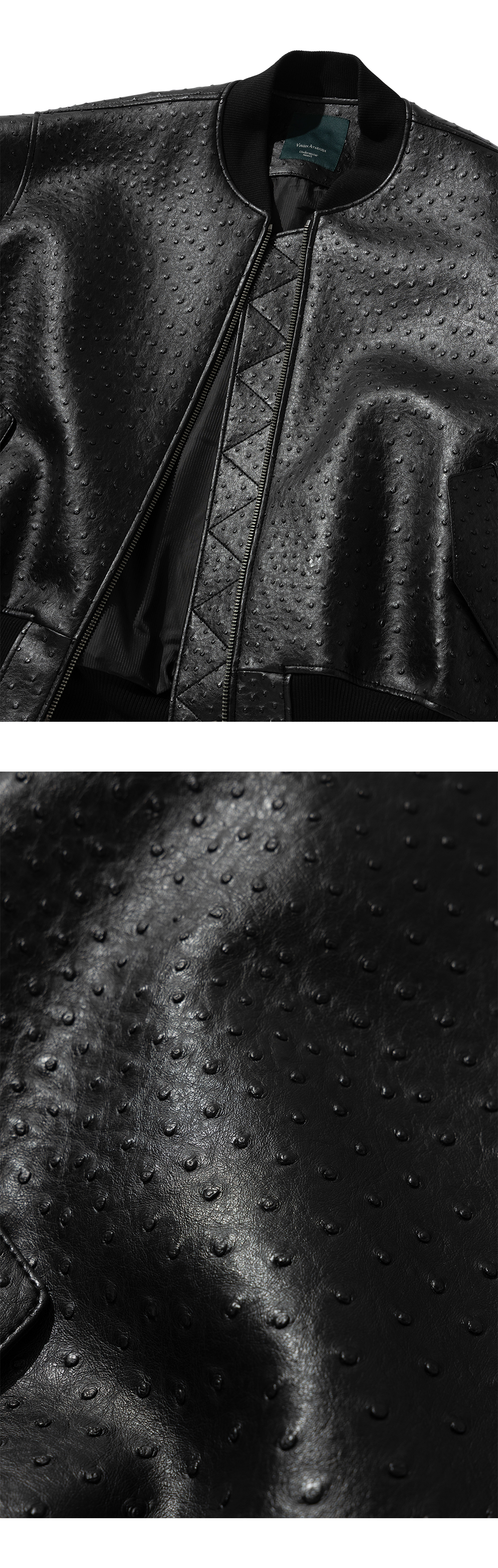 언더마이카 25SS 오스트리치 이펙트 비건 레더 MA-1 블랙