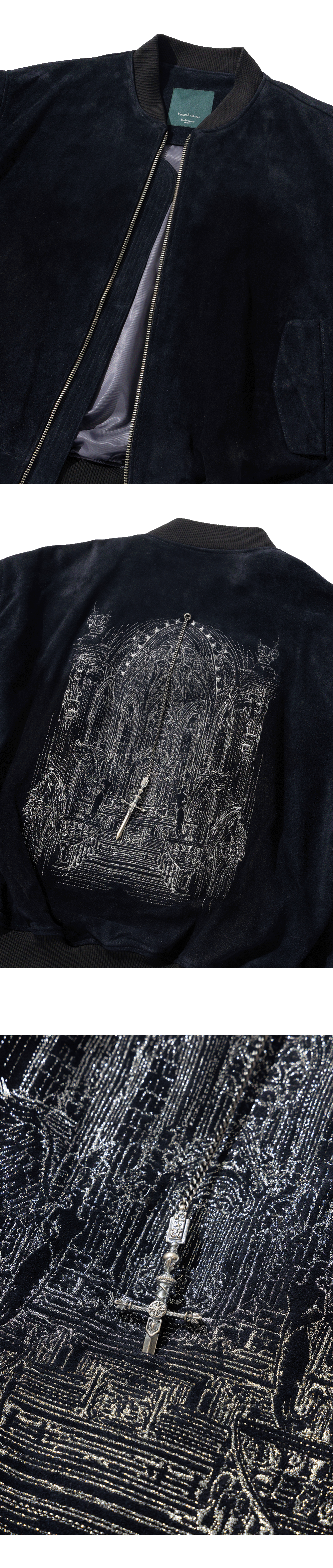 Undermycar 25SS Jeanne D'Arc Sword of Altar Embroidered Suede Blouson Navy