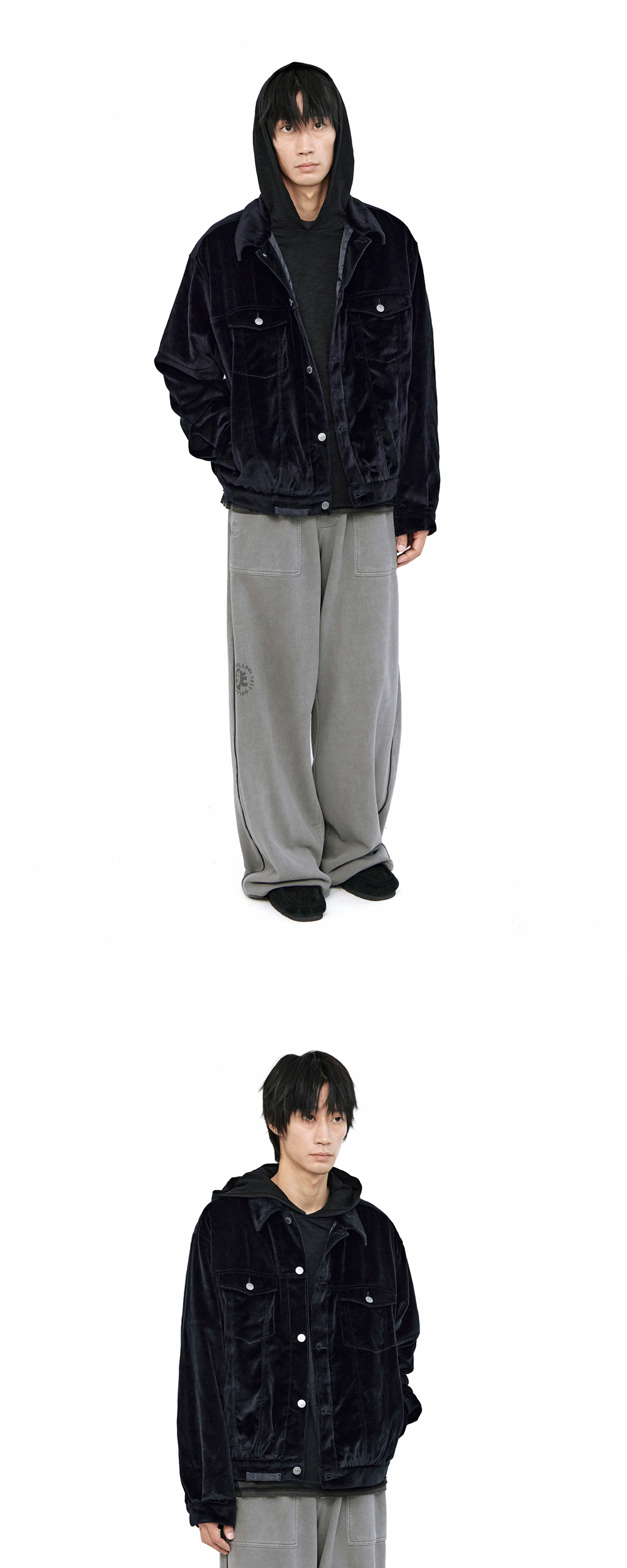 velour trucker jacket - black - 매우 부드러운 촉감의 원단으로 제작된, 무게감 있는 벨루어 트러커 자켓 - 몸에 감기는 부드러운 착용감 - 좌·우측 소매 여유분에 각각 다른 타입의 플로럴 자카드 패브릭 적용 - 전면 밑단 히든 플로럴 자카드 패브릭 패치 - 전면 2개의 플랩 포켓 & 사이즈 포켓 - 소매 여유분 배색감 2종을 중첩시킨 후면 패치 - 후면 요크 셔링 디테일 - 사이드 어드저스터 *모델: 170 중반 / 마른 체형, 3사이즈 착용 *디자인 의도에 맞게 착용하시려면 기존 폴리테루 제품과 동일한 사이즈를 선택하시는 것을 권장드립니다. *일반 체형 기준 - 170cm 초반 이하 2사이즈 권장 - 170cm 중반 3사이즈 권장 - 170cm 후반~180cm 초반 4사이즈 권장