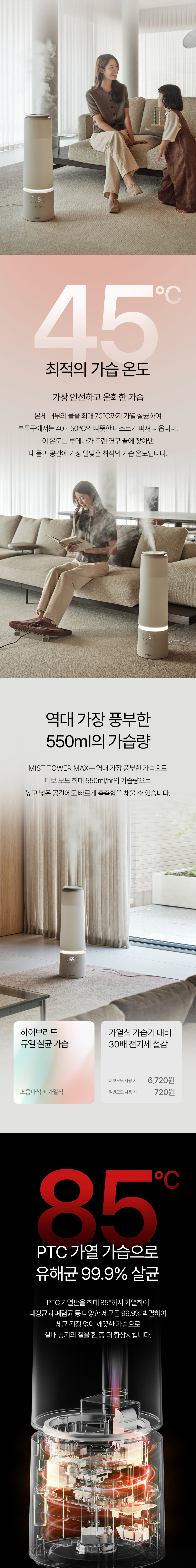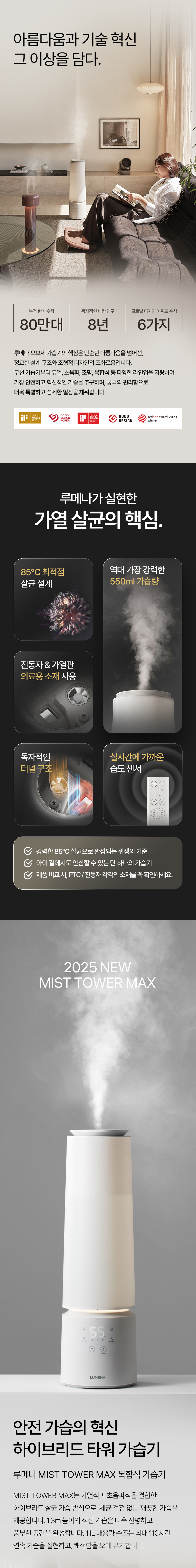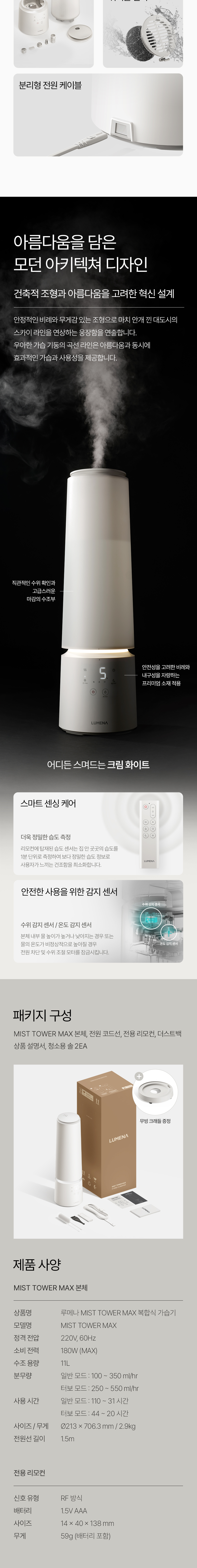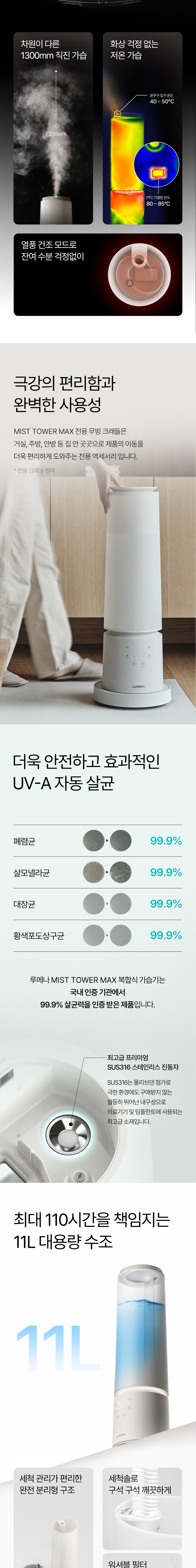 루메나 가열 살균 대용량 복합식가습기 미스트 타워 맥스 화이트