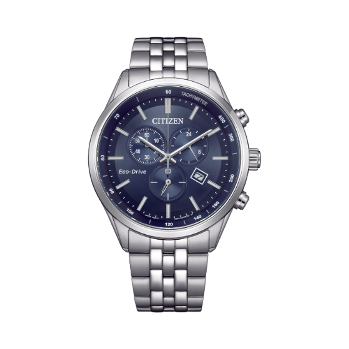 시티즌 에코드라이브 크로노그래프 42mm 스테인리스 스틸 블루 실버