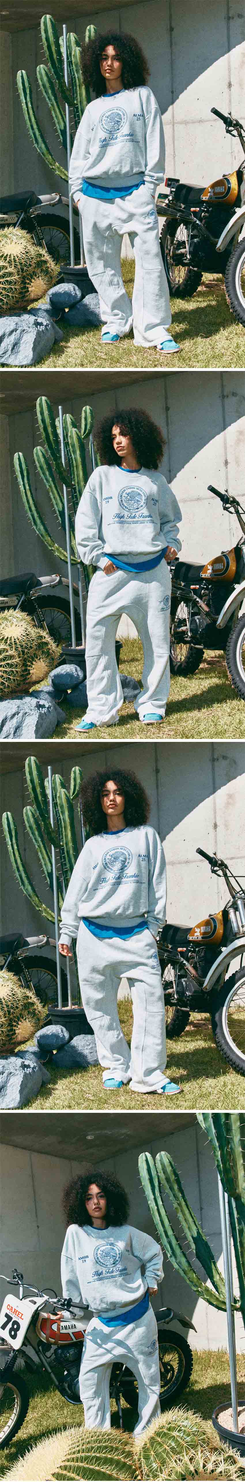 SIZE : FREE 허리 36cm / 밑위 42cm / 허벅지 33cm / 엉덩이 58cm / 기장 105 cm / 밑단 29 cm 사이즈 측정은 재는 방법과 위치에 따라 1~3cm 오차가 발생할수 있음 870g 중량감 높은 헤비 면 100% 프렌치 테리 기모 소재로 제작된 스웻팬츠 입니다 멕시코 국장을 패러디한 아트웍은 앞부분에 영혼, 사랑의 스페인어 alma, amor 는 뒷쪽 밑단위에 나염으로 표현 하였습니다 부츠컷 실루엣의 스웻 팬츠이면서 밑위가 긴 특징을 갖고 있습니다 무릎 부분에 절개로 스웻 팬츠 특유의 무릎 늘어남을 방지 하는 것과 함께 밑단에 조임끈으로 원하는 실루엣을 만들기 좋은 아이템 입니다 가먼트 노멀 워싱 작업으로 마무리 하여 수축률을 최소화 하였습니다 -주의- 옷을 뒤집어 미지근한 물에 세탁 표백제나 강력한 세제 사용 금지 건조기 사용 금지 프린트 부분 다림질 금지 Made in Korea