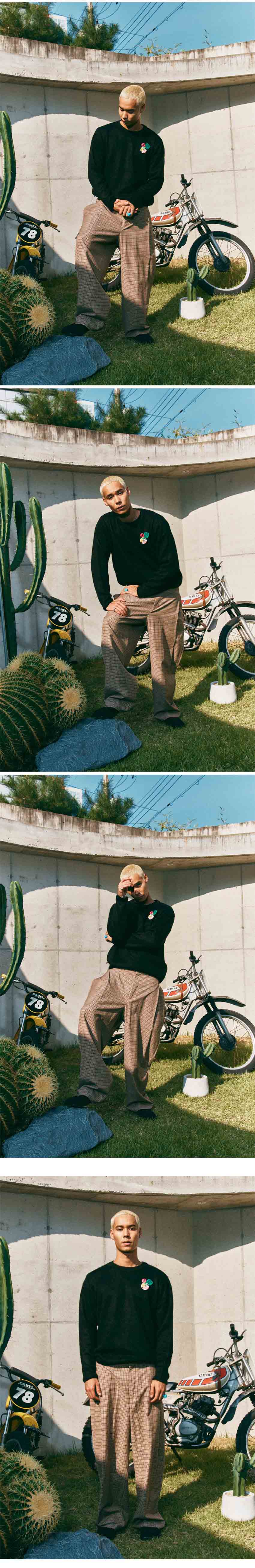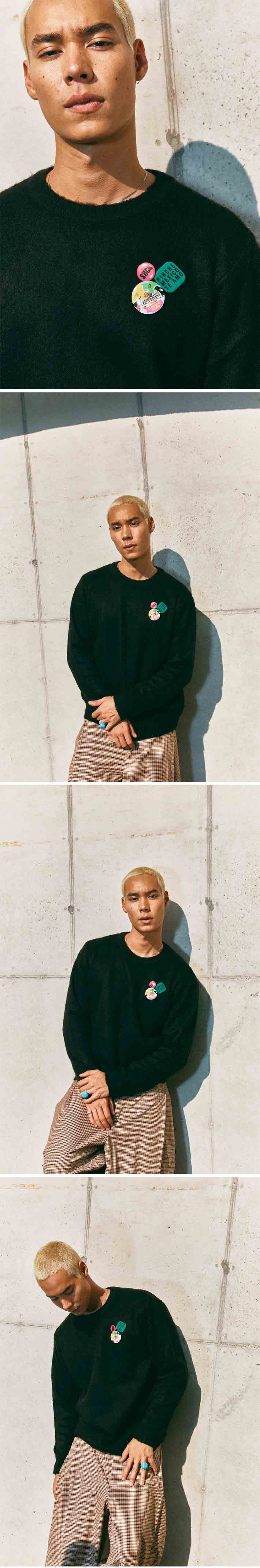 SIZE : FREE 어깨 48cm 가슴 62cm 소매 63cm 기장 68cm 사이즈 측정은 재는 방법과 위치에 따라 1~3cm 오차가 발생할수 있음 Akira : 182cm 69kg Koky : 167cm 53.5kg 여유있는 루즈핏의 라운드넥 니트로 7게이지 2합의 아크릴사 100% 로 제작 되었습니다 겉면에 브러쉬 작업을 더해 포근한 터치감과 함께 뒷면에 핸드 스티치로 고정한 니트 패치 디테일 로 포인트를 했습니다 3종류의 프랭키 뱃지가 포함된 상품 입니다 이염 주의 -주의- 드라이클리닝 Made in Korea