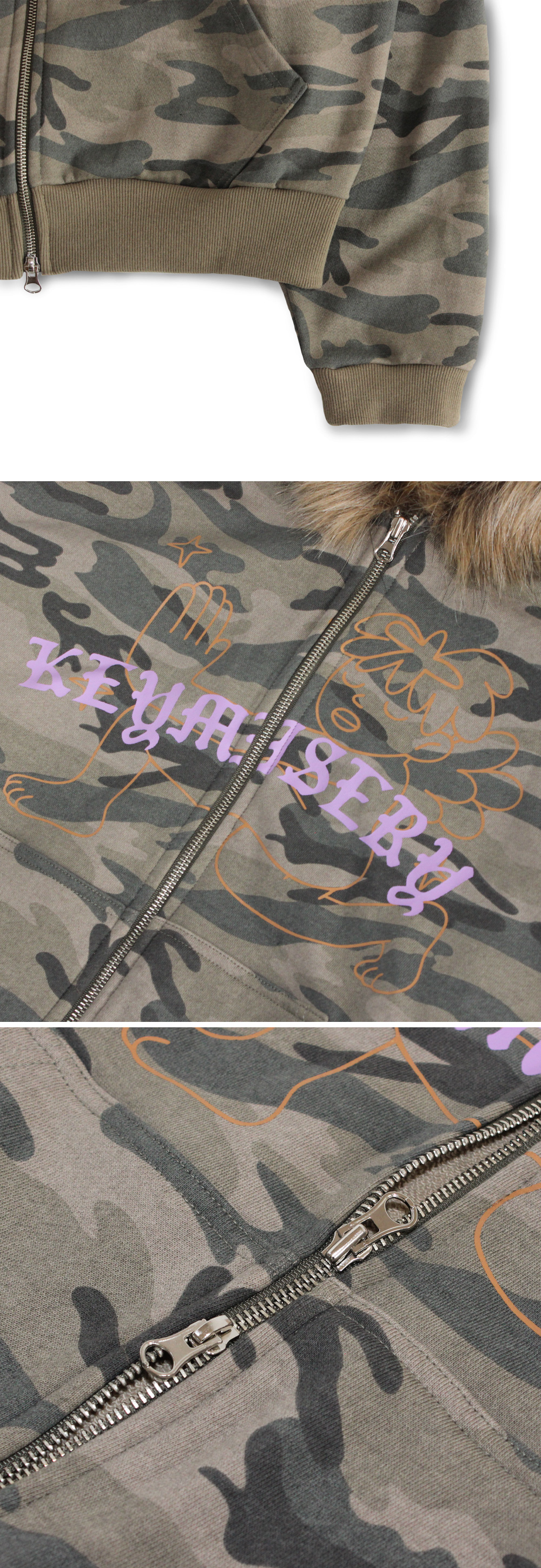 키미저리 빈티지 스프레이 퍼 엔젤 후드 집업 - 카모