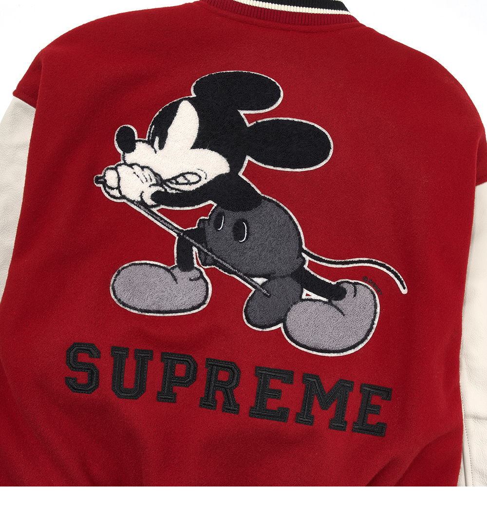 슈프림 x 넘버 나인 x 미키 마우스 바시티 자켓 레드 - 25FW