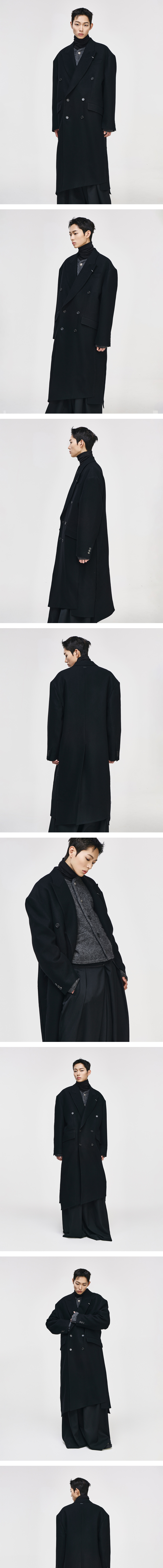 - SONGZIO HOMME 어시메트릭 더블 브레스트 코트 - 트윌조직감에 탄탄한 울 패브릭 - 어시메트릭 라인의 더블 브레스티드 피크드 라펠 코트 디자인 - SONGZIO 시그니처 링 주얼리 - 전면 웰트 포켓과 플랩 포켓 - 사이드 패널 컷아웃 디테일 - 센터 벤트 - 오버사이즈 실루엣 FABRICATION MADE IN CHINA
