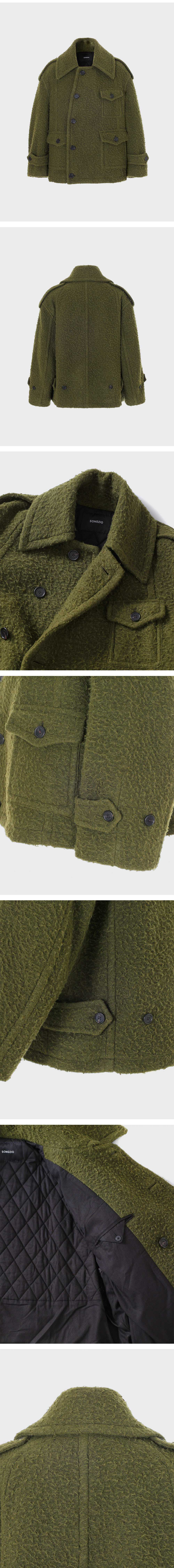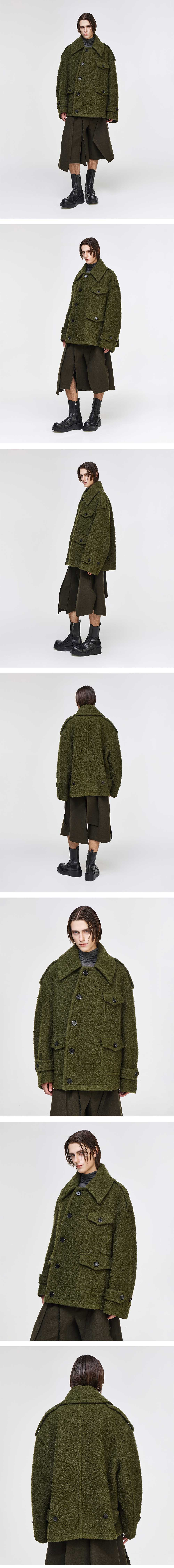 - SONGZIO 컬렉션 커브드 벨 코트 - 헤어리한 표면감의 탄탄한 울 패브릭 - 커브 절개 라인의 벨 실루엣의 하프코트 - 다트 변형 코쿤 소매 - 전면 밀리터리 아웃포켓 - 소매와 밑단 장식 디테일 - 퀼팅 라이너 - 오버사이즈 실루엣 FABRICATION MADE IN KOREA