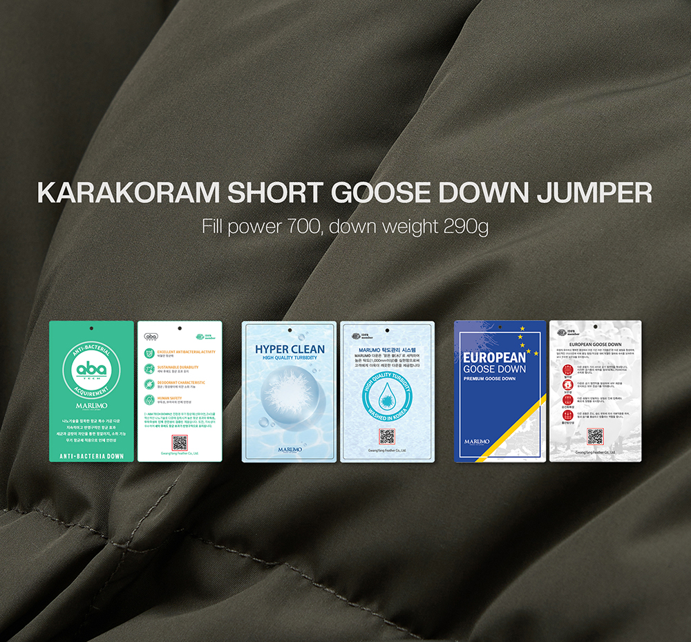 티엔지티 카라코람 숏 구스다운 점퍼 카키