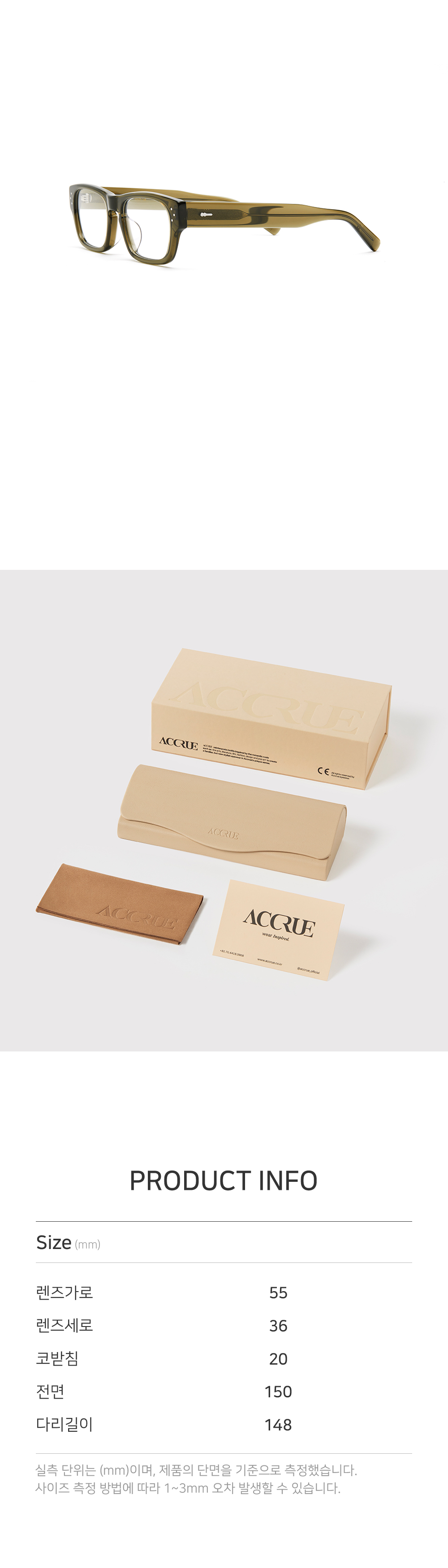 *안경테에 장착되어있는 렌즈는 프레임의 형태의 변형을 막기 위한 플라스틱 데모렌즈입니다.